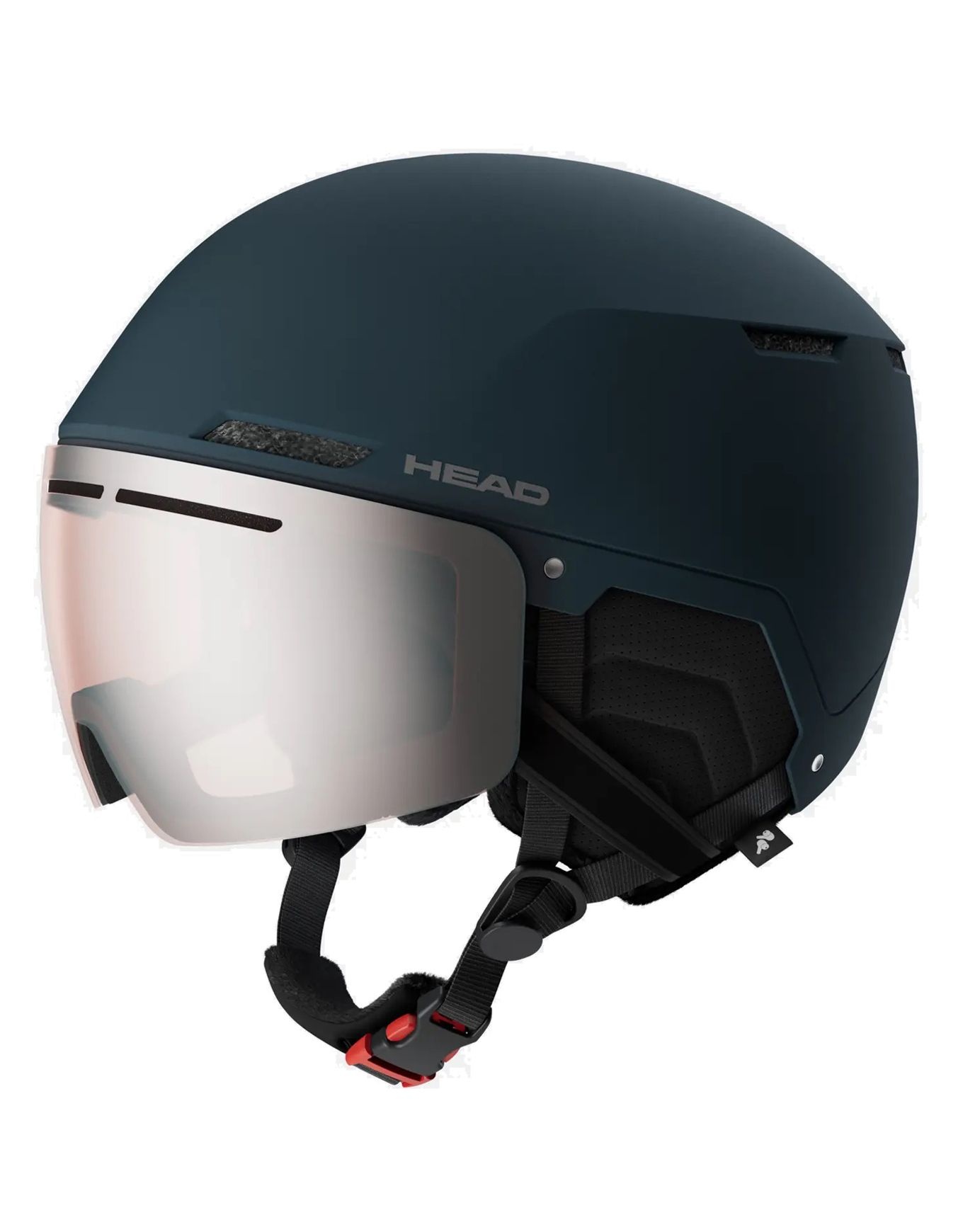 Casque ski homme Head Cinema Night Petrol avec visière intégrée S2 interchangeable, construction Hardshell, ventilation réglable et doublure micropolaire amovible pour confort et protection hivernale.