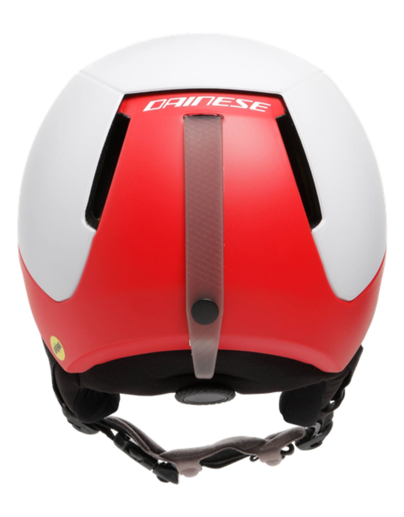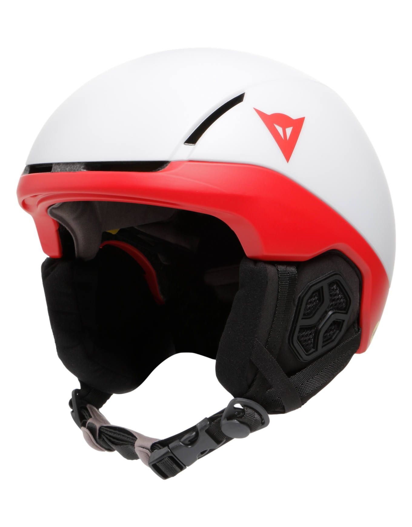 Casque de ski/snowboard Dainese Elemento Mips White Red unisexe, construction In-Mold et technologie Mips® pour une protection légère contre les impacts obliques. Ventilation stratégique, doublure thermoformée et oreillettes respirantes pour confort et évacuation de l’humidité.