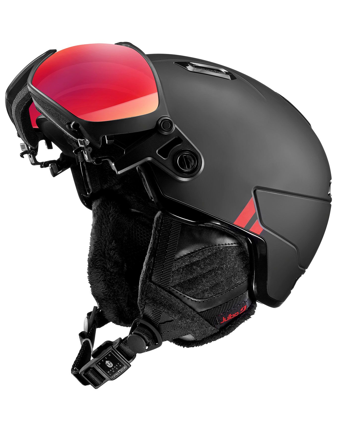 Une gestion efficace du climat interne est assurée par le système de ventilation actif Adjustable Air Flow ainsi que par la visière ventilée. Le port de lunettes de vue sous la lentille intégrée est parfaitement compatible avec ce casque.
