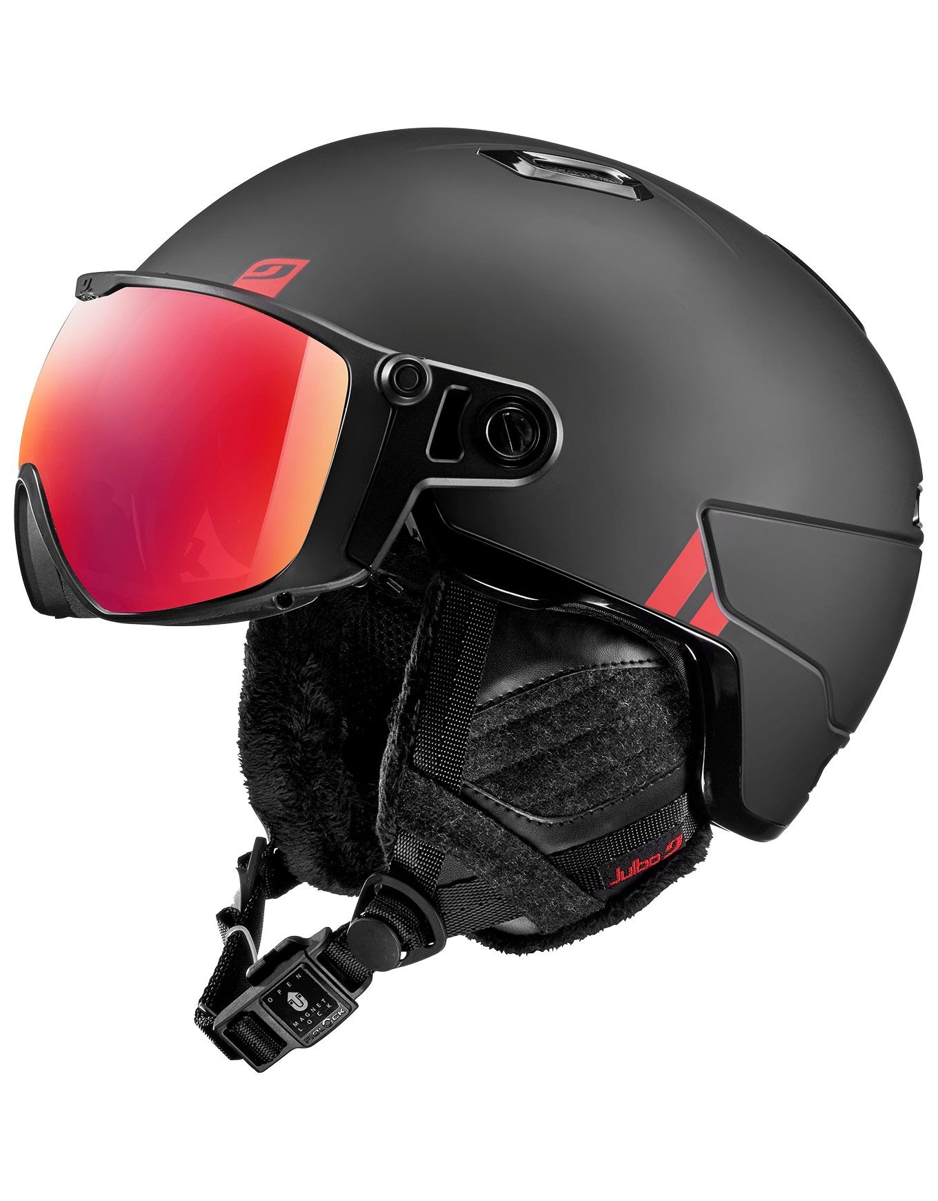 Le casque à visière Julbo Globe Evo Reactiv 1-3 LA Black combine visière photochromique Light Amplifier, ventilation réglable et oreillettes 3D amovibles pour un confort saisonnier et une vision claire par tous les temps.