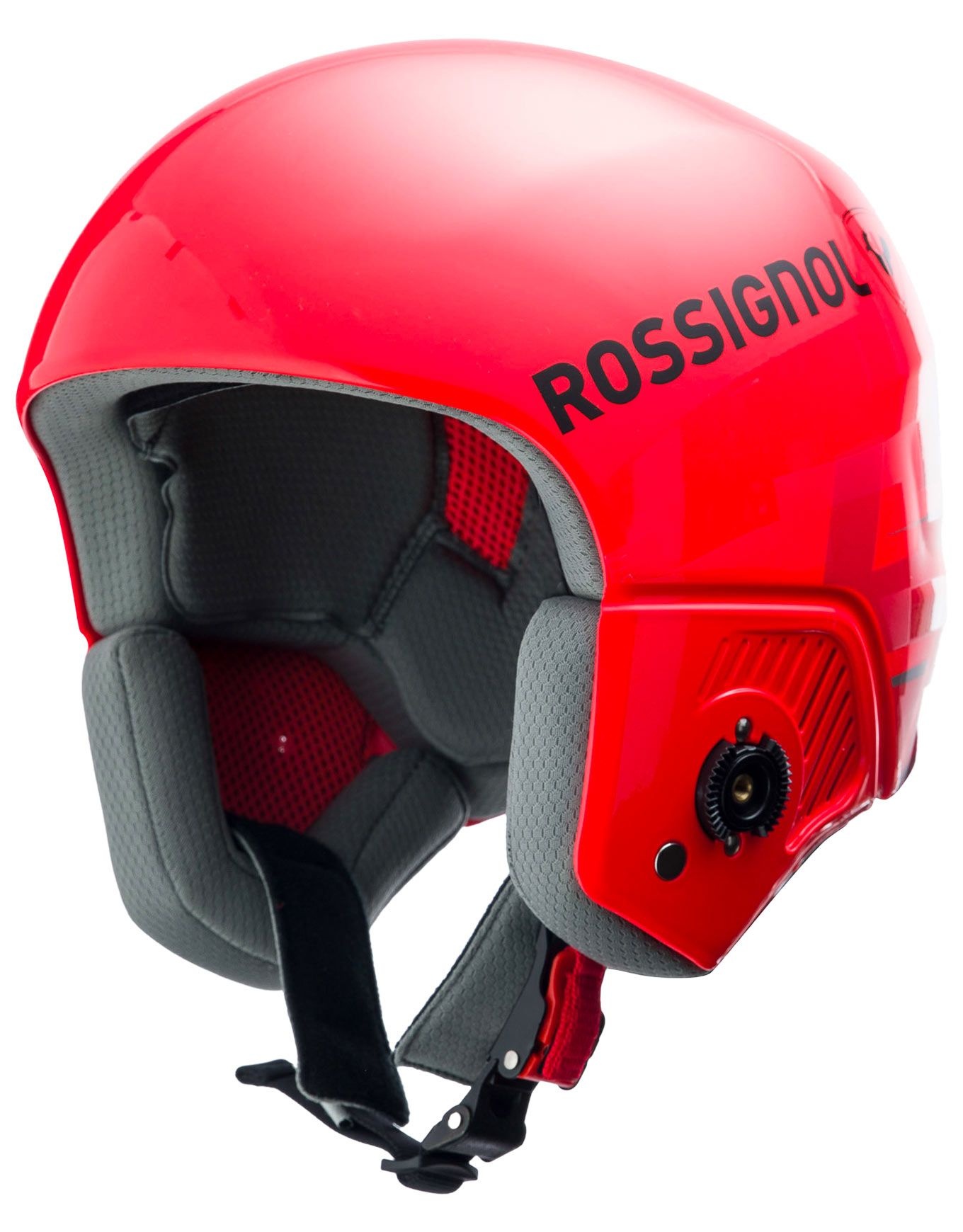 Casque de ski compétiteur Rossignol Hero Giant Impacts Fis Red doté de la technologie IMPACT pour une protection renforcée sur piste et hors piste, du système R-FIT SYSTEM pour un ajustement précis et confortable, et compatible avec la mentonnière Hero.