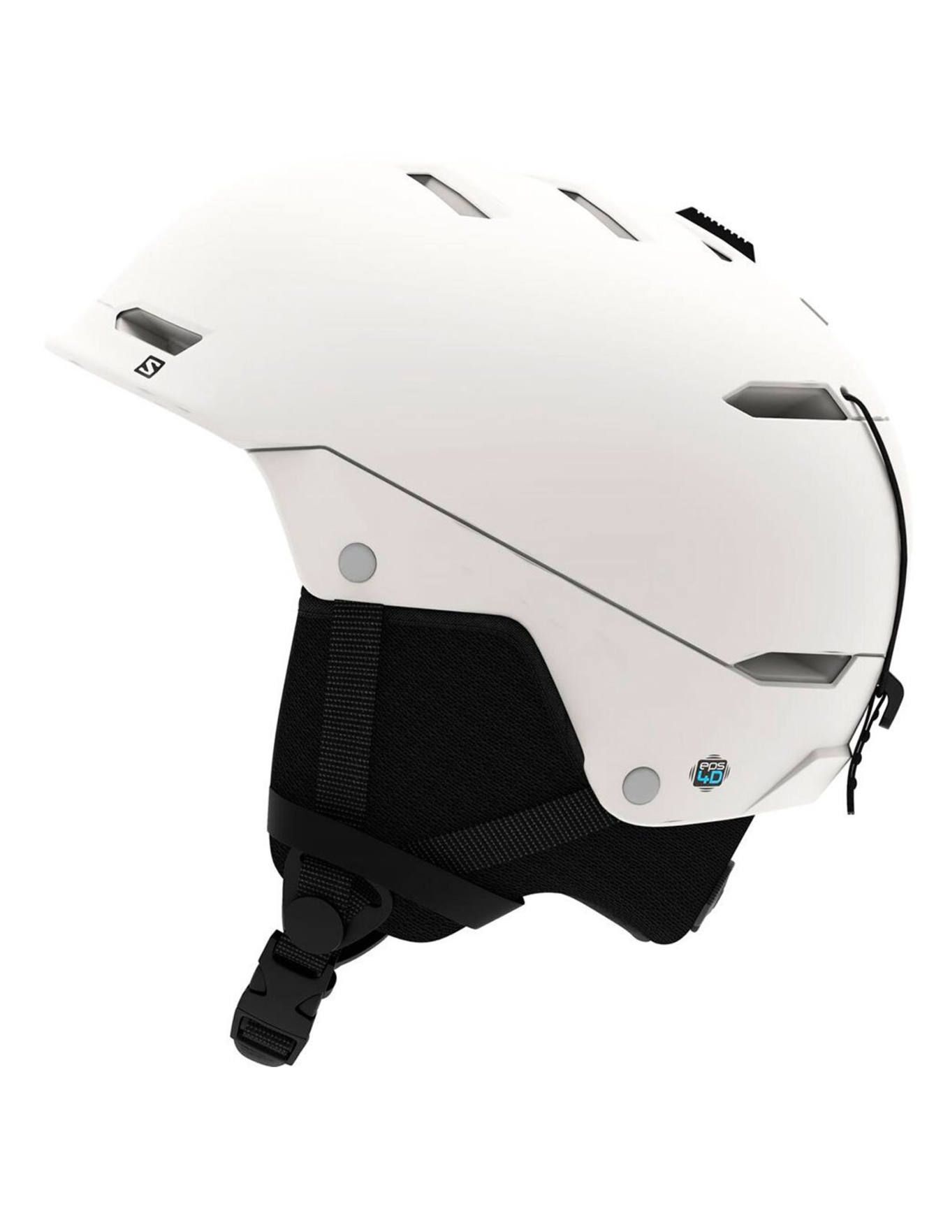 Casque de ski/snowboard Salomon Husk White, construction In-Mold légère et durable, technologie EPS 4D pour une absorption optimale des chocs. MaxiFit Construction assure un fit instantané ajusté, ventilation Airflow et protège-oreilles 3D compatibles audio.