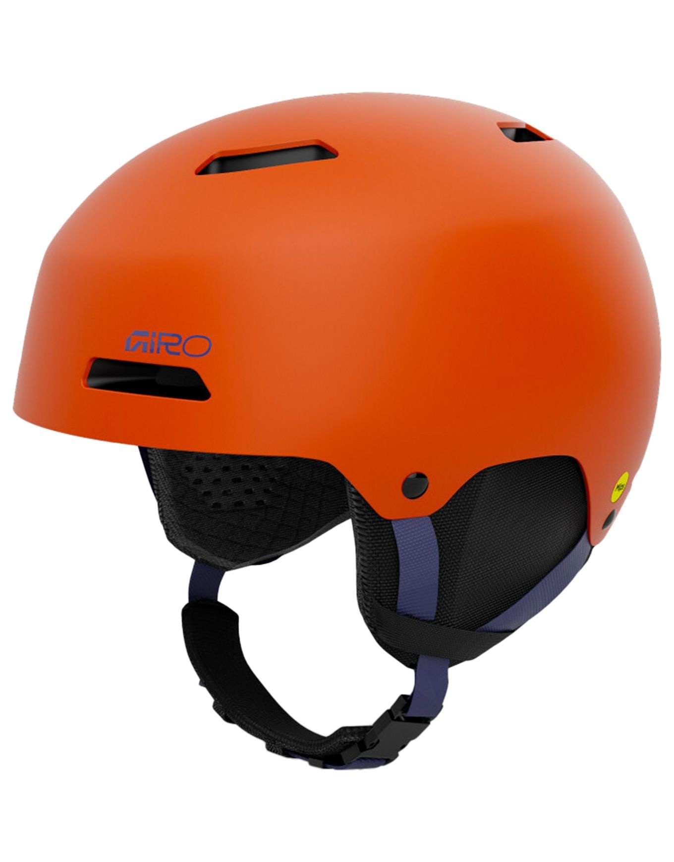Casque de ski/snowboard Giro Ledge FS Mips Mat Orange, coque ABS et mousse EPS pour une protection fiable, technologie MIPS contre les chocs obliques, ventilation passive antibuée et coussinets amovibles.