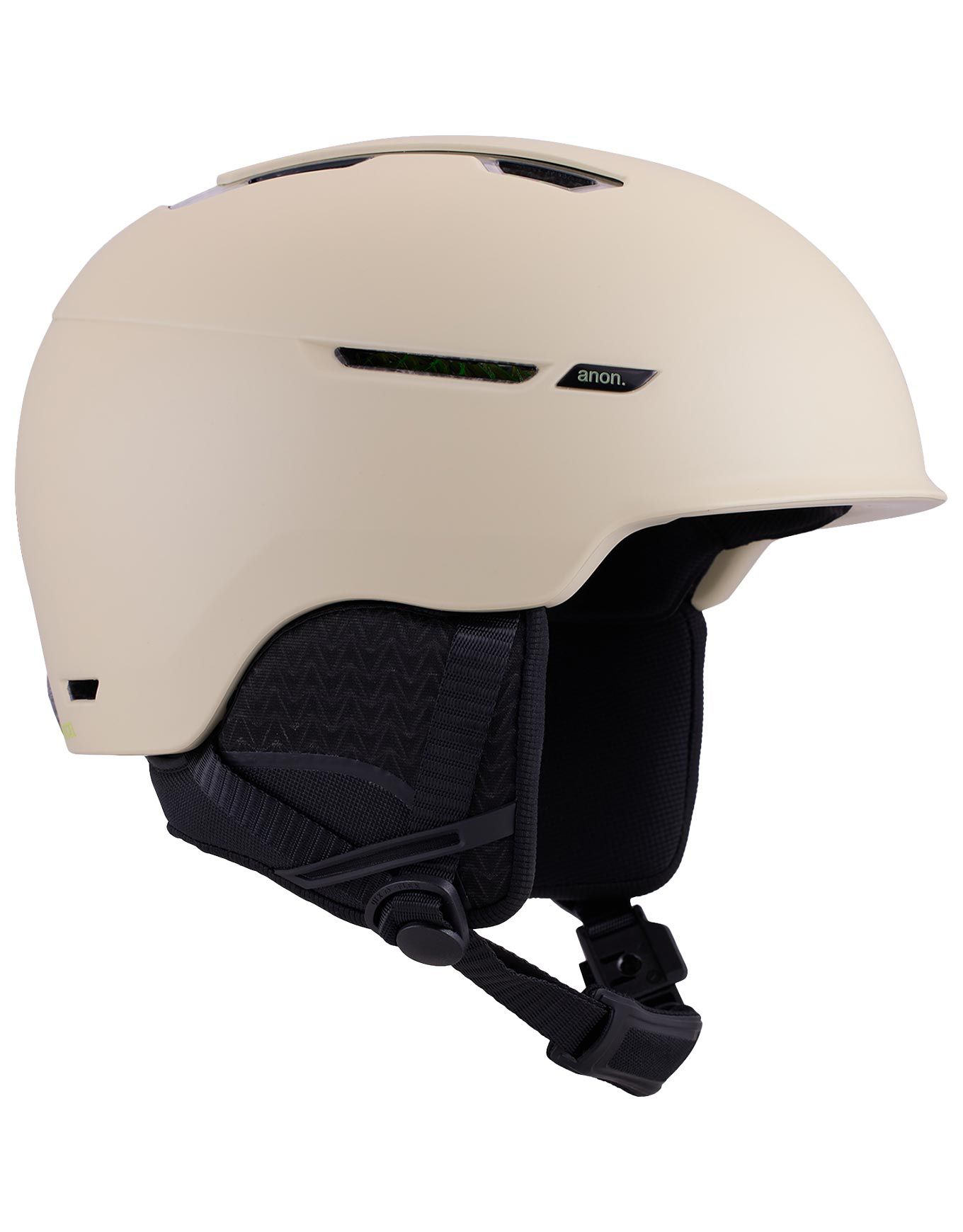 Casque de ski Anon Logan WaveCel Mushroom : coque légère, technologie WaveCel® réduisant les impacts rotatifs, ajustement BOA® 360° et sangle Fidlock® pour un confort précis, ventilation passive anti-buée.