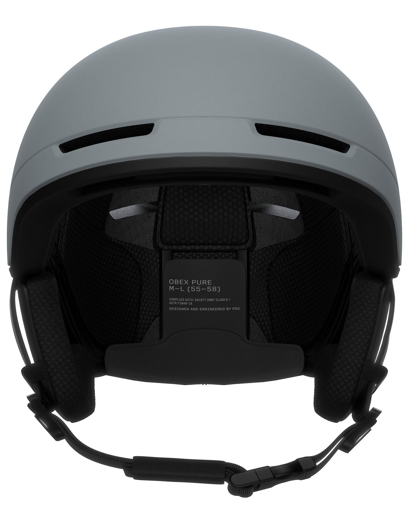 Casque POC Obex Pure Granite Grey : coque polycarbonate, intérieur EPS, ajustement 360°, canaux de ventilation, compatible masque et système POC Aid.