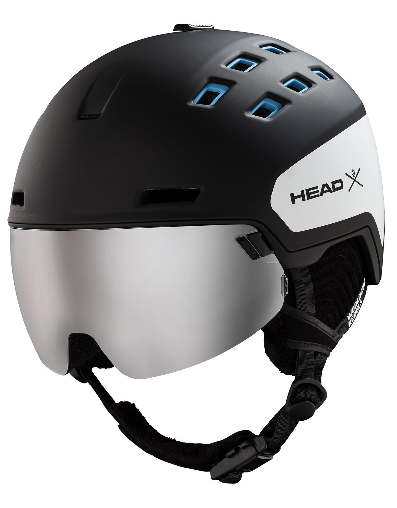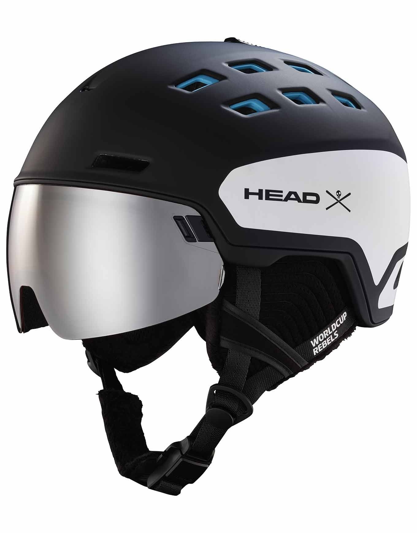 Casque de ski Head Radar Wcr homme avec visière intégrée double écran, construction In-Mold EPS légère, ventilation réglable, doublure micropolaire amovible.