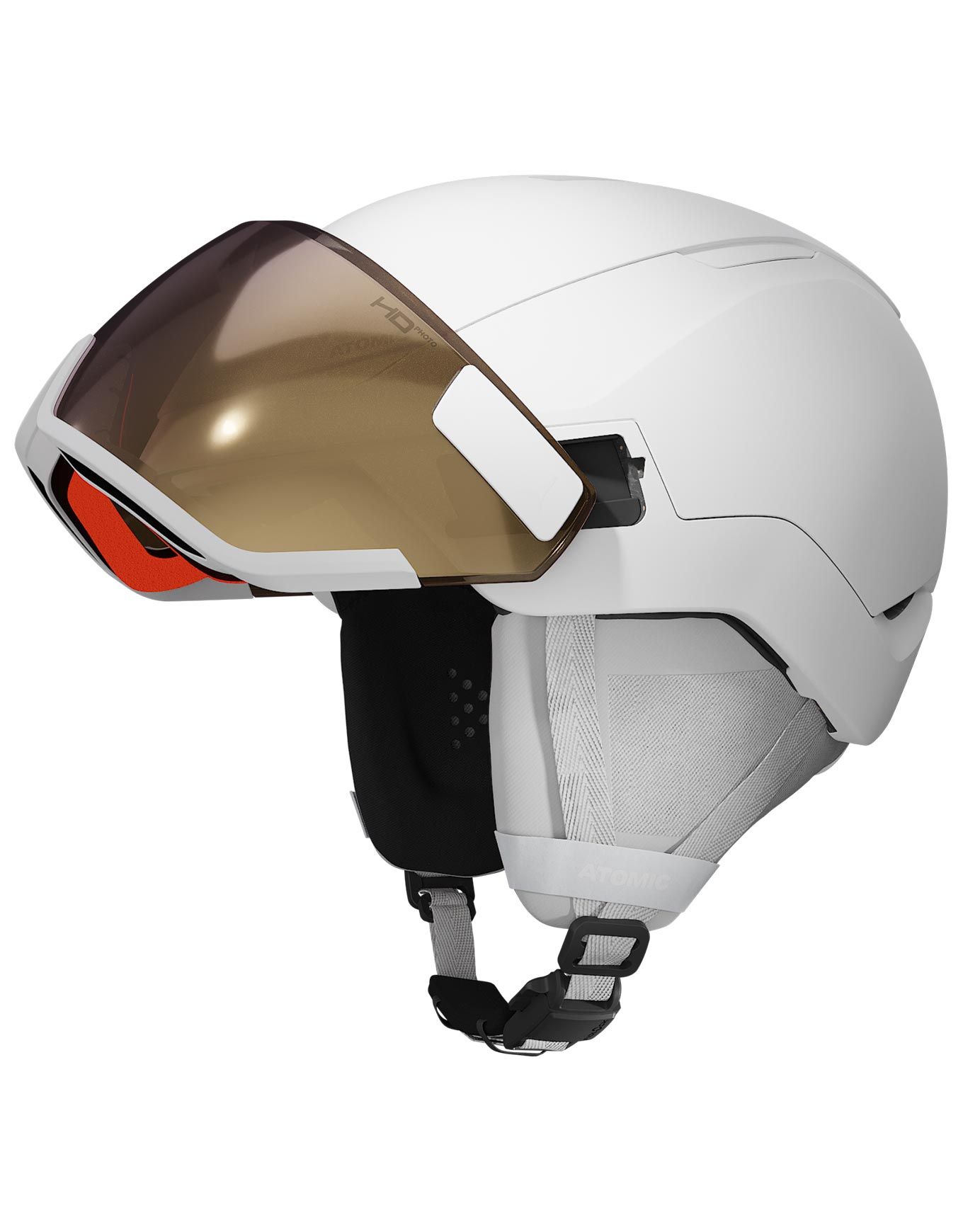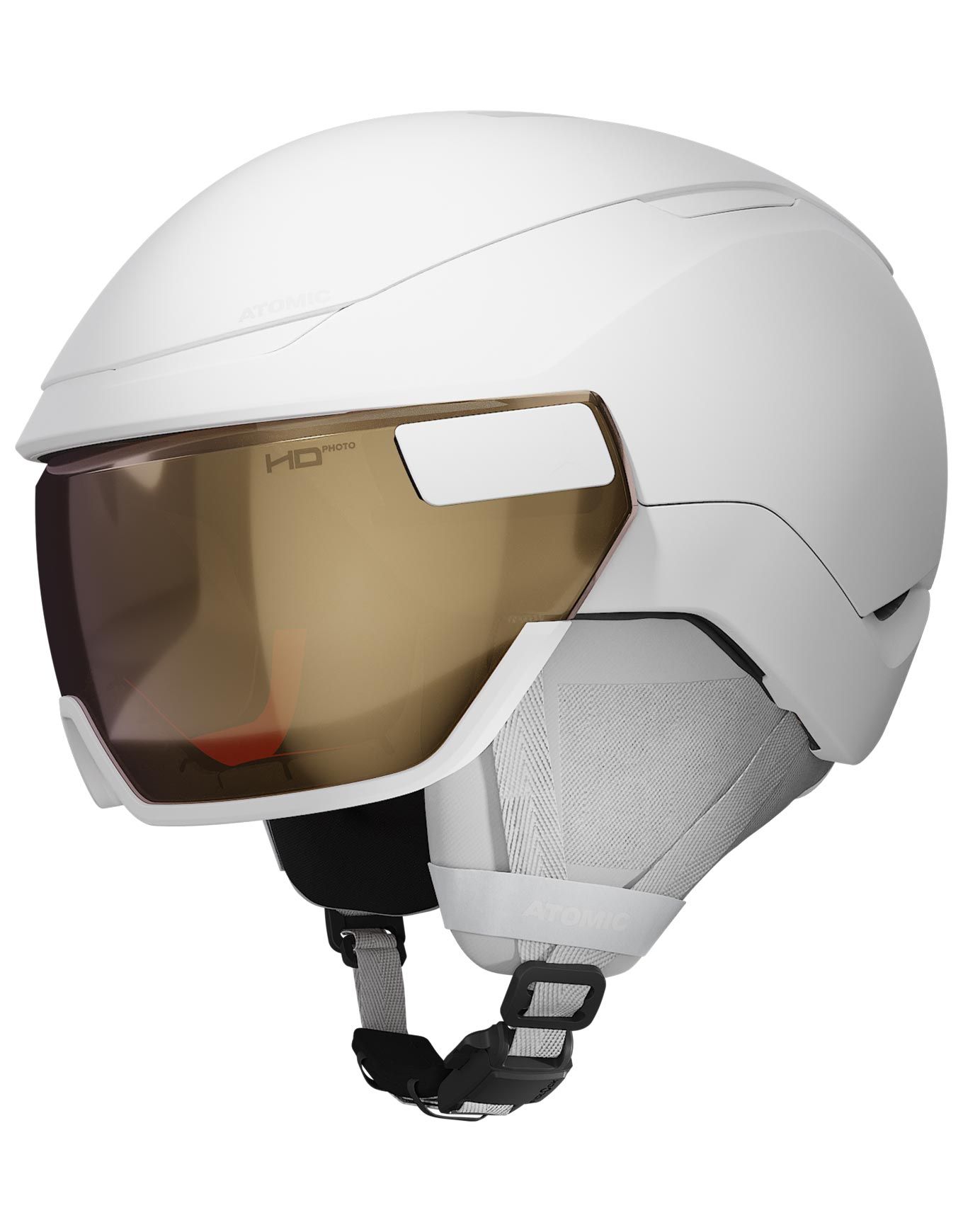 Casque de ski Atomic Revent GT A Visor HD Photo White Heather intégral avec visière photochromique, technologie AMID 360° contre les impacts rotationnels, ajustement 360° Fit System, mousse triple couche Live Fit Frame, ventilation Aircon et doublure mérinos thermorégulatrice.