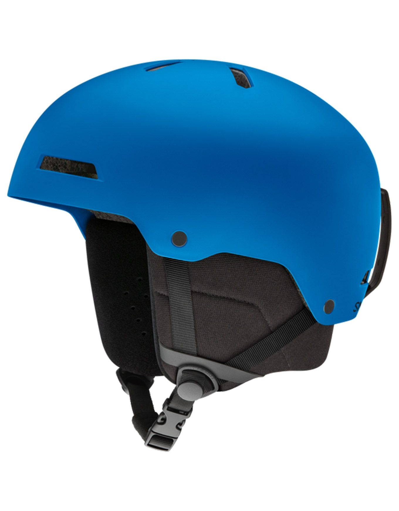 Casque de ski Smith Rodeo Matte True Blue en ABS résistant, ajustement rapide, ventilation fixe, oreillettes amovibles, compatibilité audio Aleck™ et 68 % matériaux recyclés.