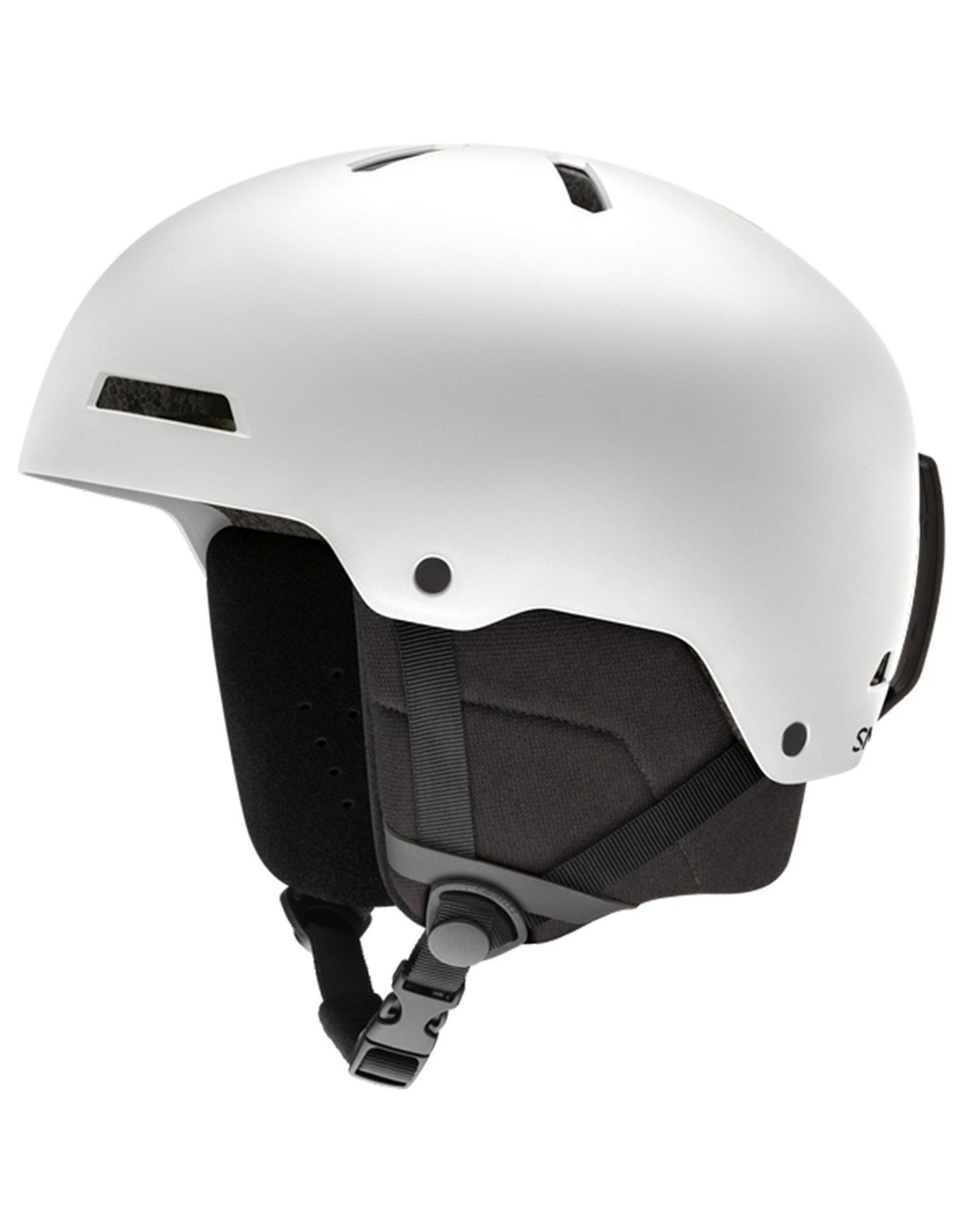 Casque de ski et snowboard Smith Rodeo Matte White en ABS robuste, ajustement rapide, ventilation anti-buée, oreillettes amovibles et compatibilité audio Aleck™.