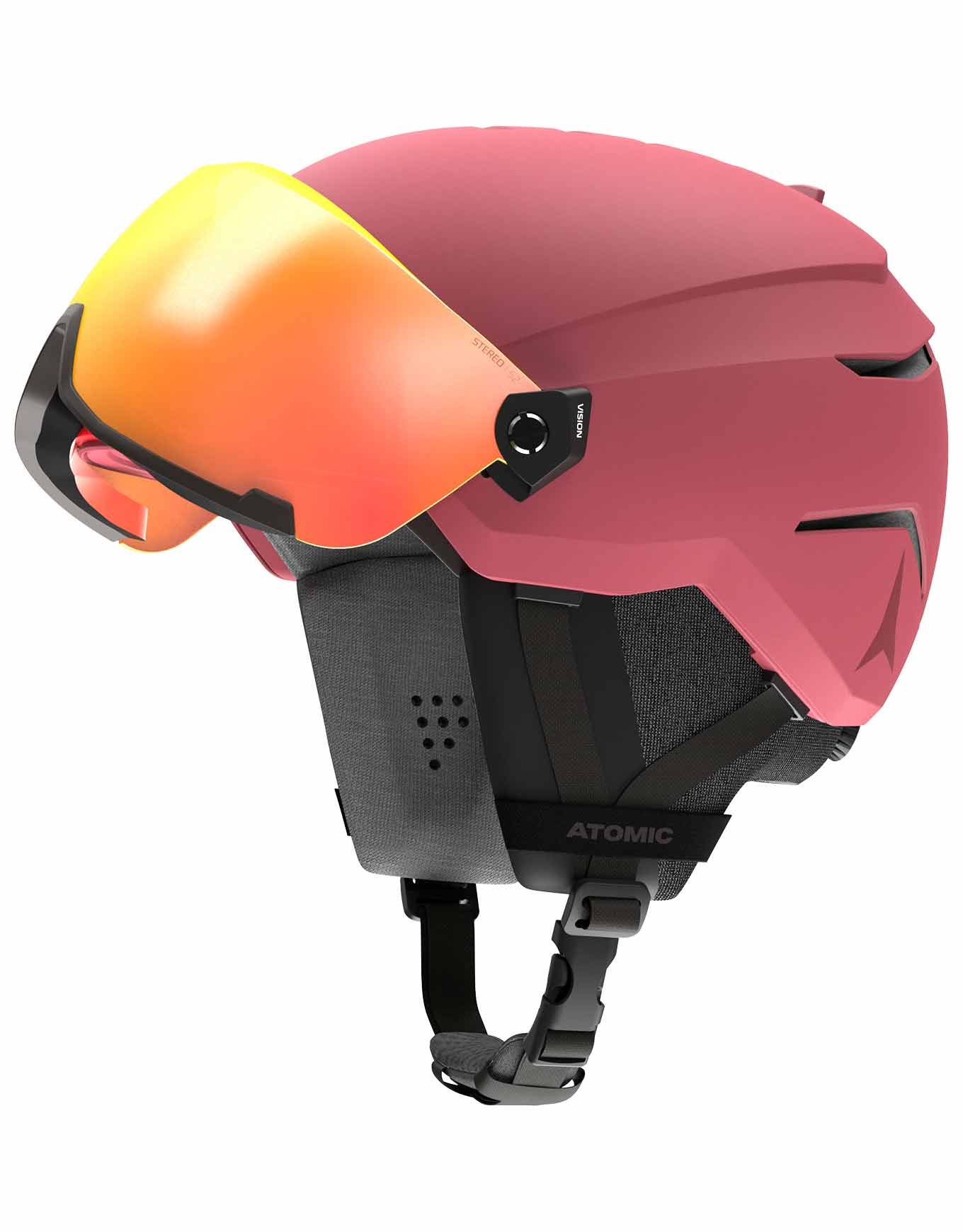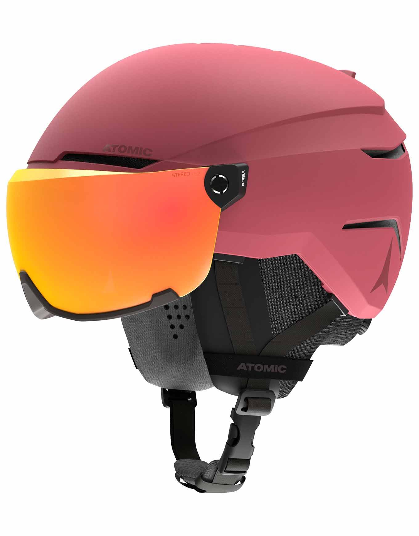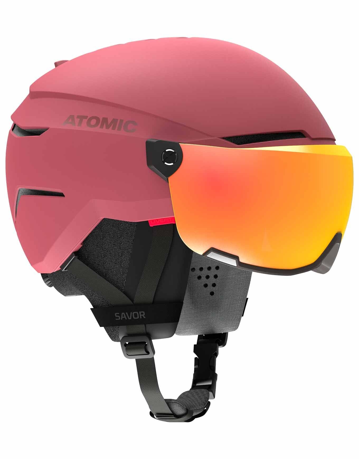 Casque de ski unisexe Atomic Savor Visor Stereo Brown intégrant masque amovible catégorie 2 Green Stereo anti-buée, structure Holo Core, mousse Live Fit, doublure Merino 3M X-Static et ventilation Aircon réglable.