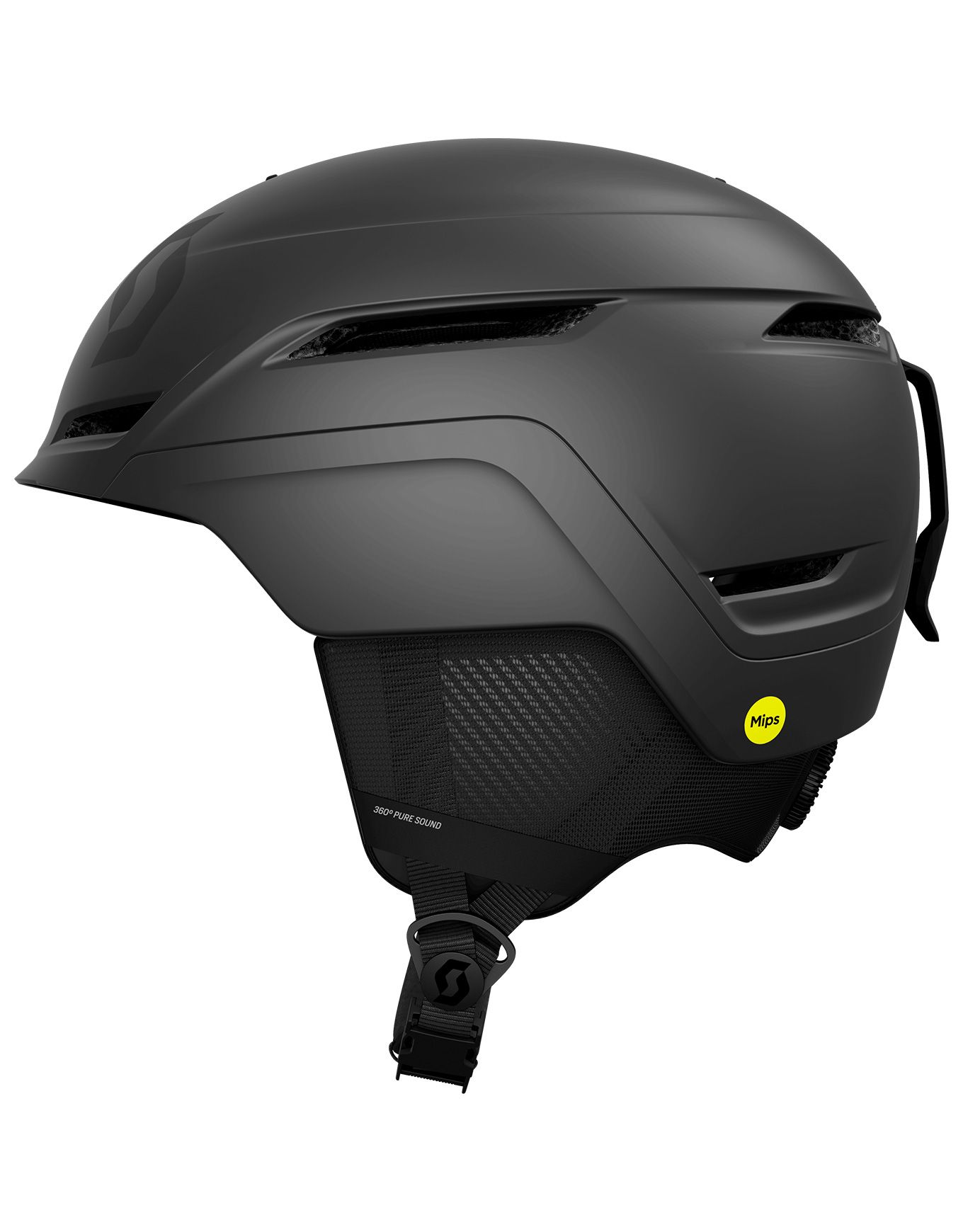 Casque de ski Scott Symbol 2 Plus Black, construction In-Mold polycarbonate/EPS et technologie MIPS® pour une protection ciblée contre les impacts rotationnels. Ventilation active/passive, ajustement WRAS 2 et oreillettes 360° Pure Sound pour un confort et une sécurité optimaux sur piste ou en backcountry.