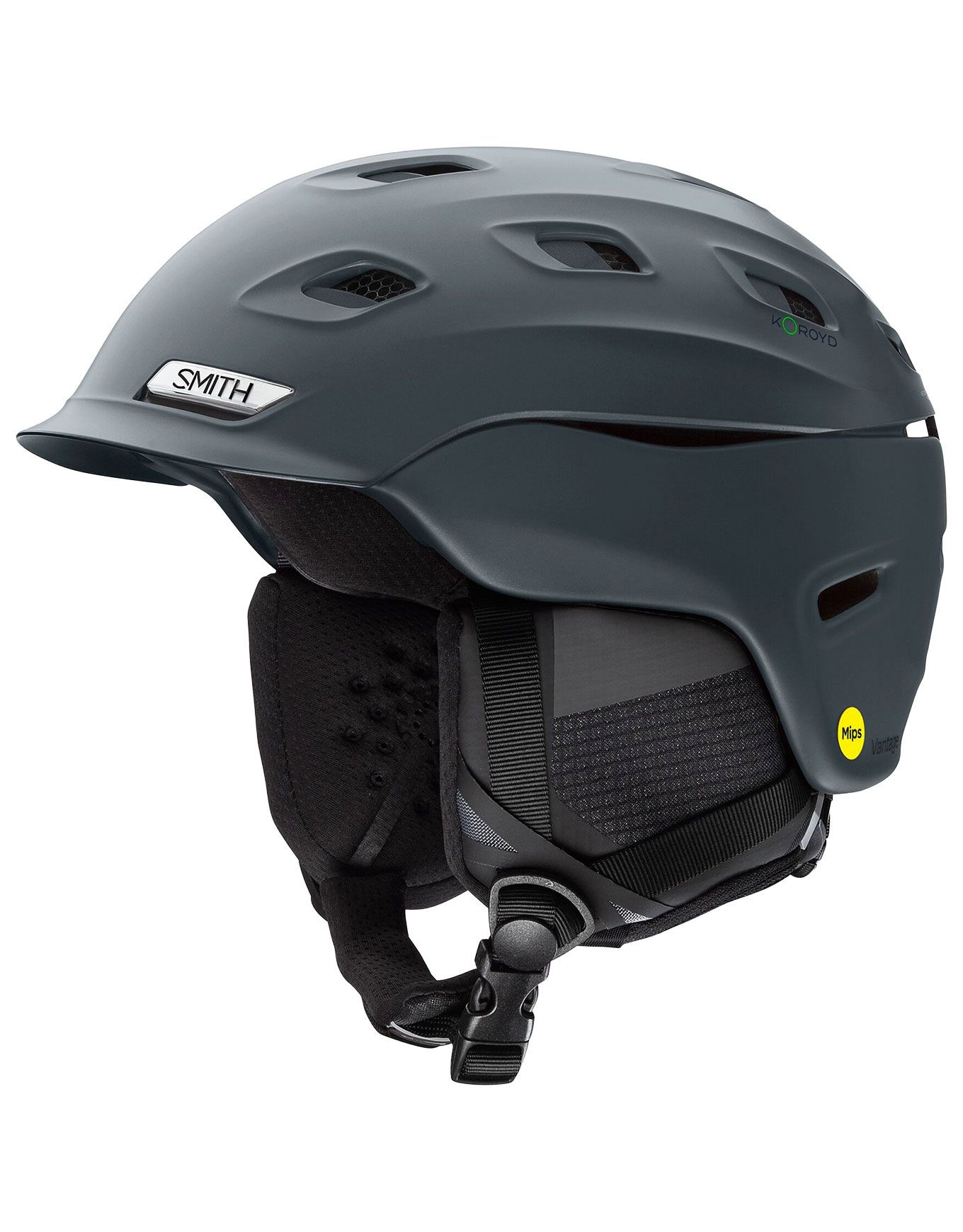 Casque de ski et snowboard Smith Vantage M MIPS Matte Slate pour homme, combinant protection Koroyd™ et MIPS®, ajustement BOA® 360, doublure antibactérienne et oreillettes compatibles audio Aleck™.