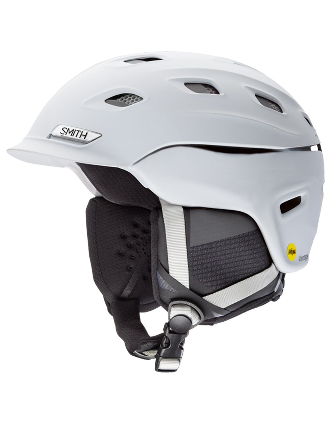 Casque ski homme Smith Vantage M MIPS Matte White : construction Aerocore Koroyd®, technologie MIPS® et réglage Boa 360 pour protection, aération et maintien précis.