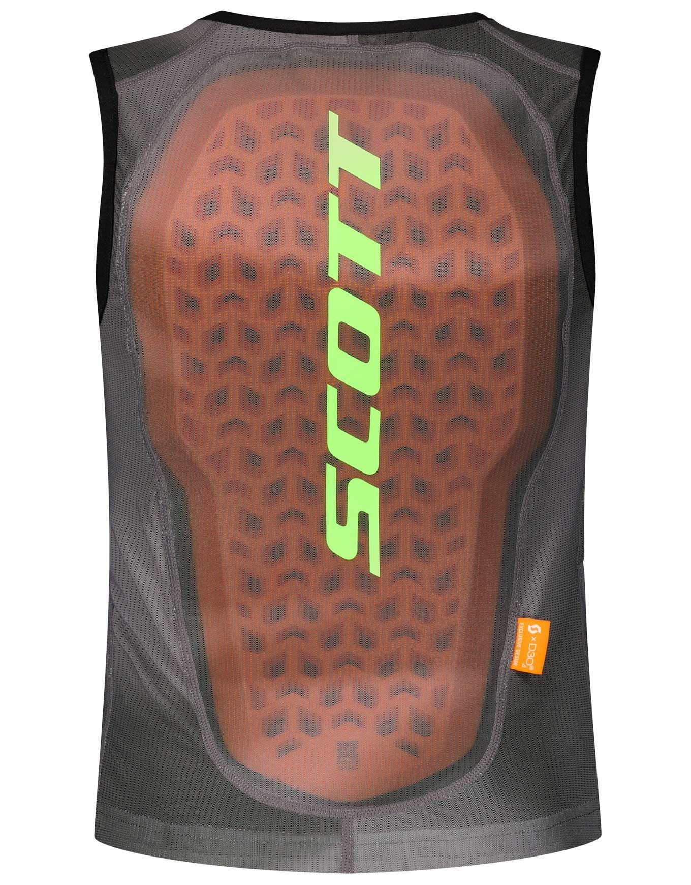 Gilet de protection Scott Airflow Junior Evening Grey/Glow Green pour enfant, léger, ventilé et réglable, avec plaque dorsale amovible et maille recyclée pour un confort respirant sur les pistes.