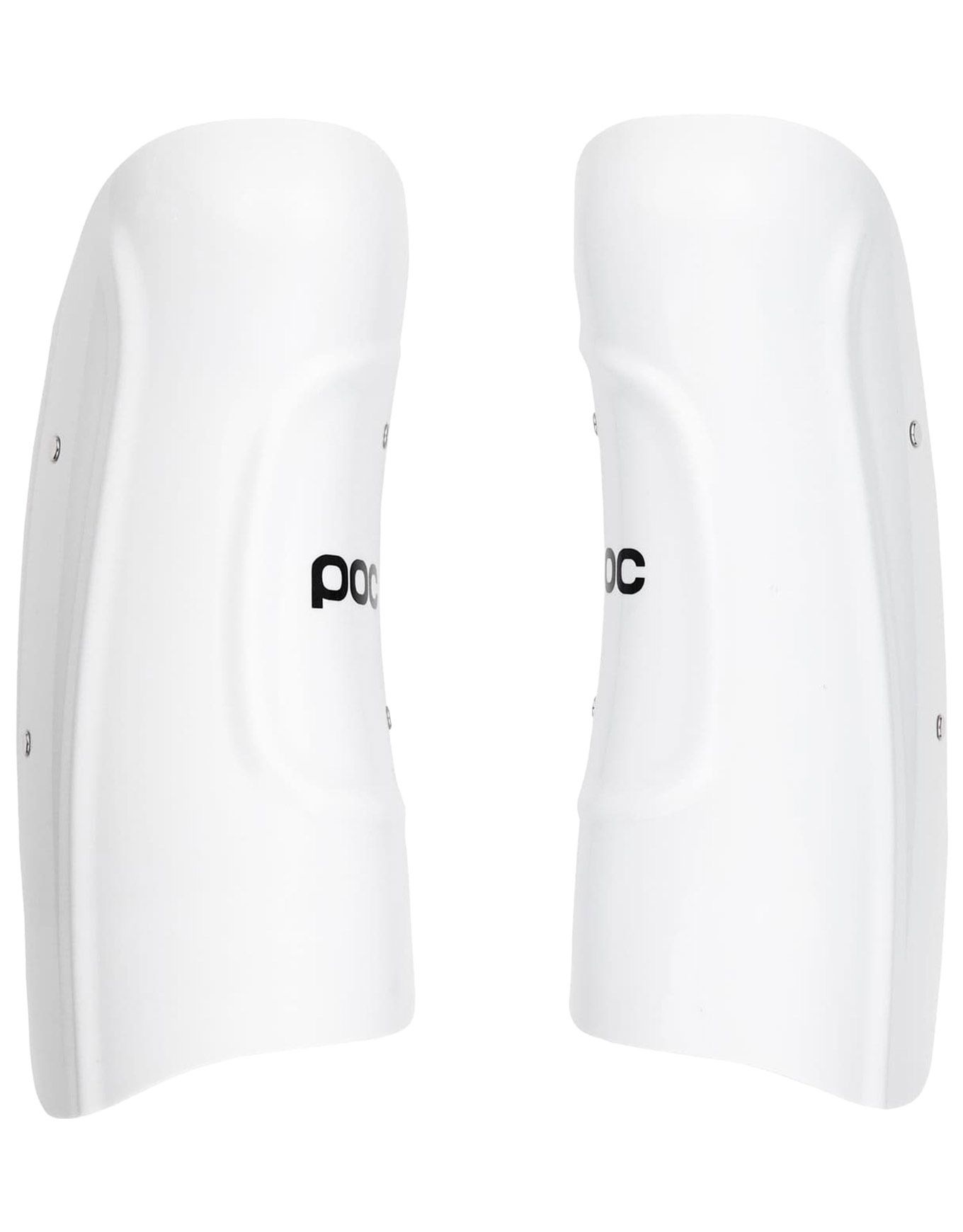 POC Shins Classic Jr Hydrogen White : protection de tibias junior en plastique HDPE durable, rembourrage EVA silicone, longueur réglable, fermeture crochet.