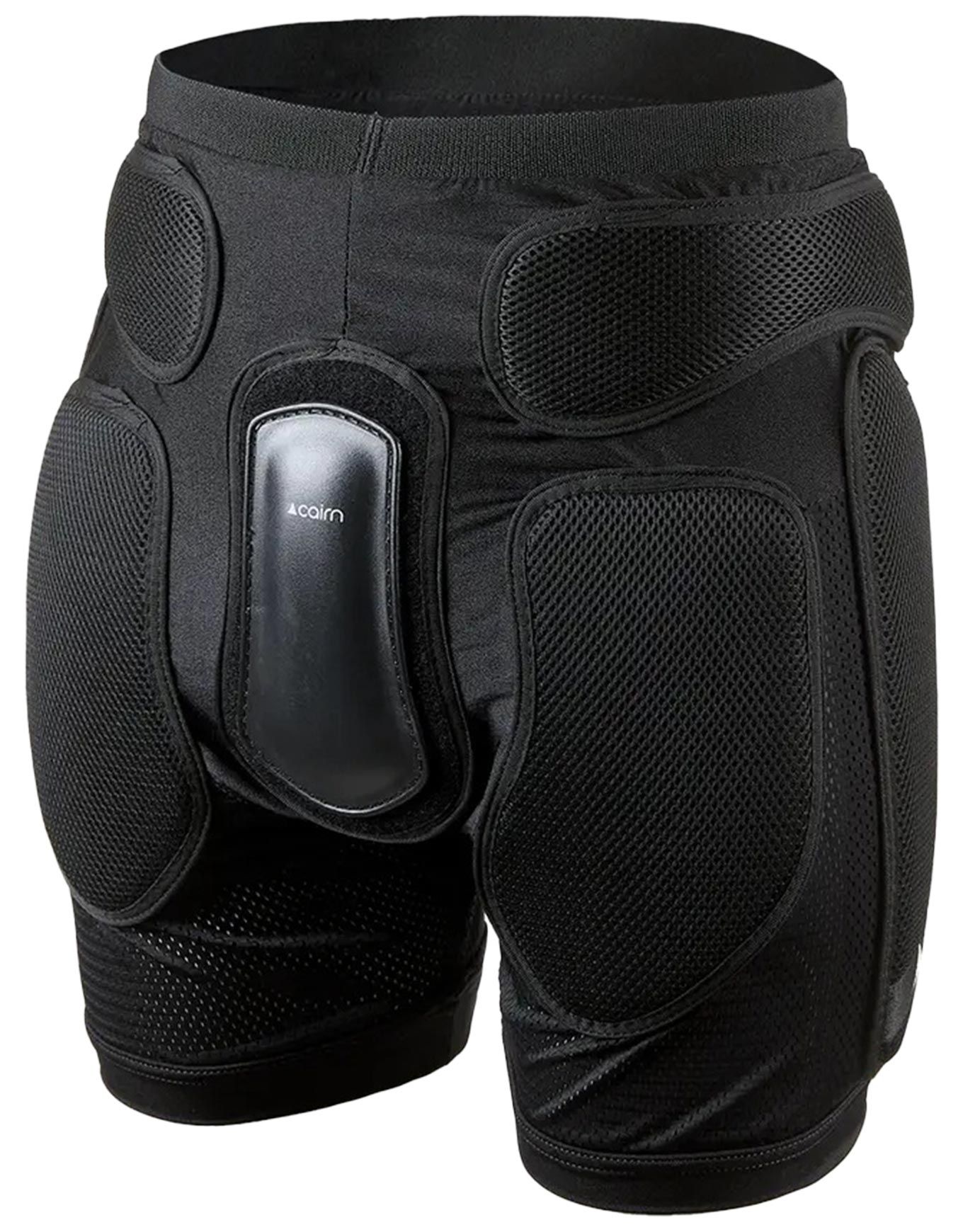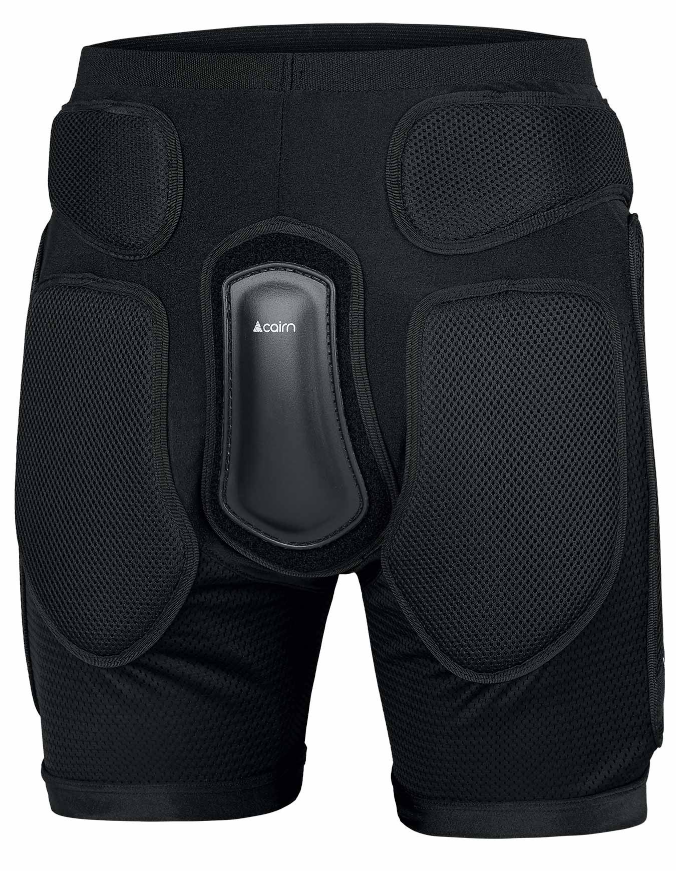 Short de protection souple Cairn Proxim J Black avec mousses EVA tri-densité aux hanches, cuisses et fesses, plaque polycarbonate coccyx amovible, matière stretch respirante.