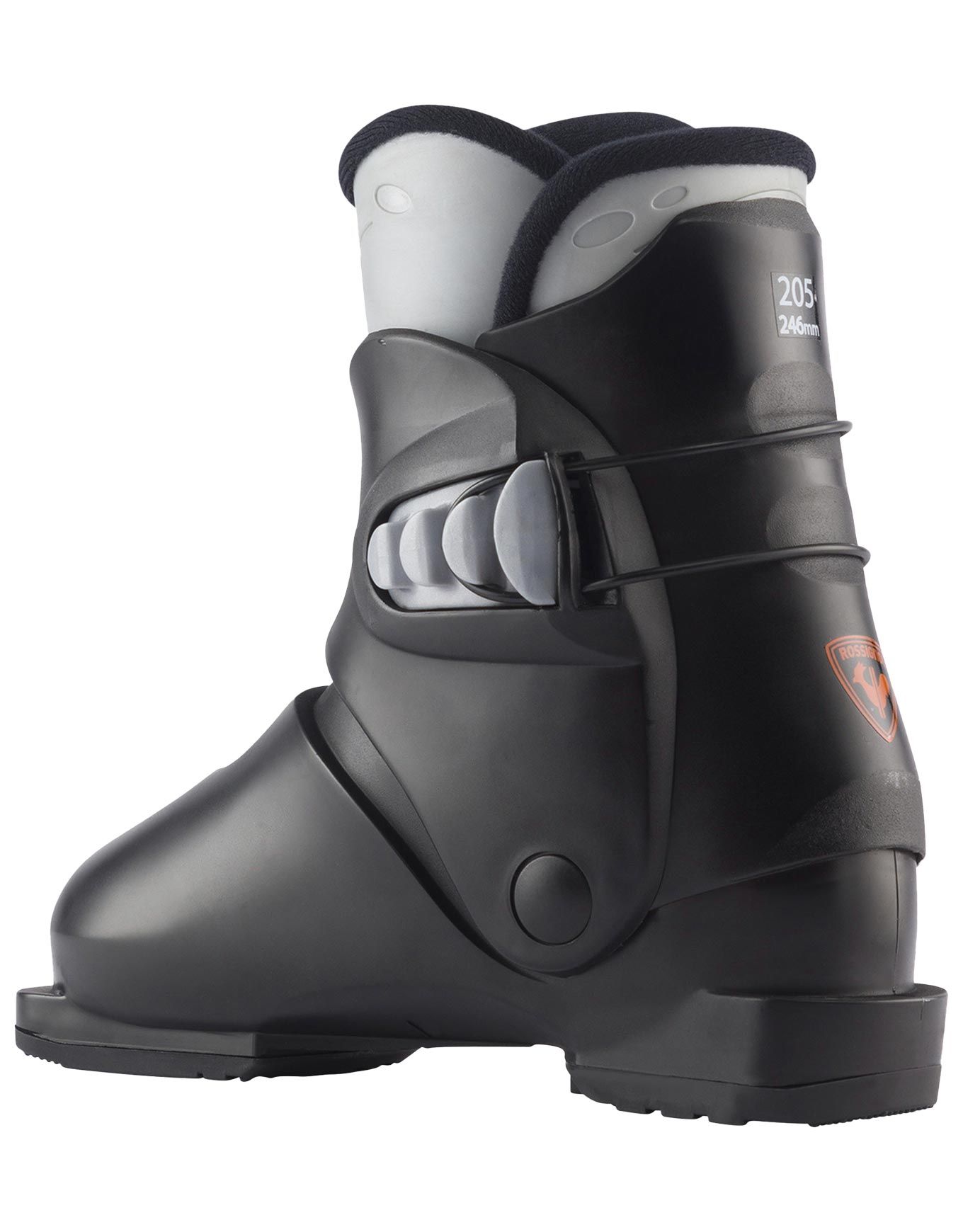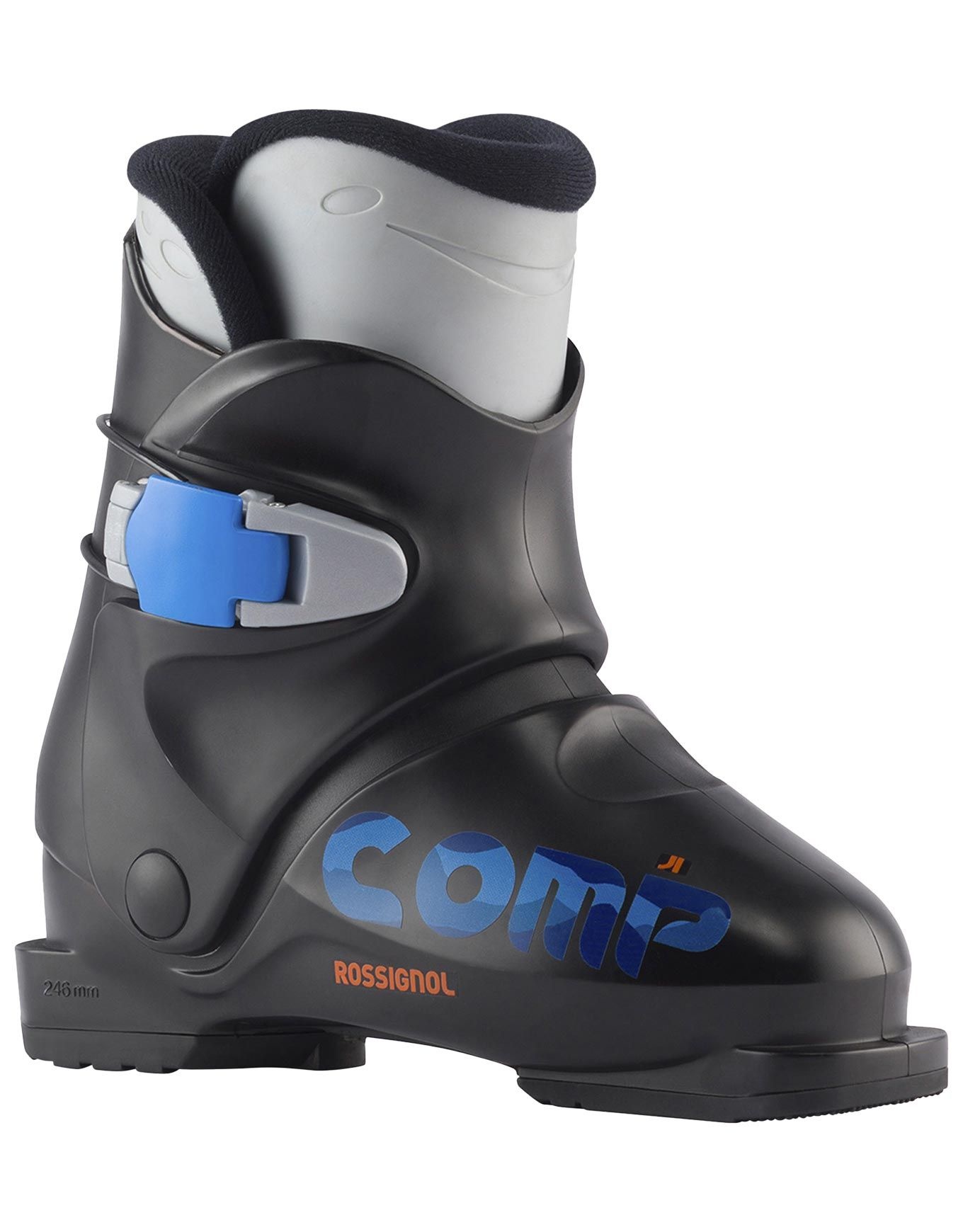 Chaussure de ski Rossignol Comp J1 Black : flex 30, boucle unique et chausson confort pour les tout-petits qui débutent.