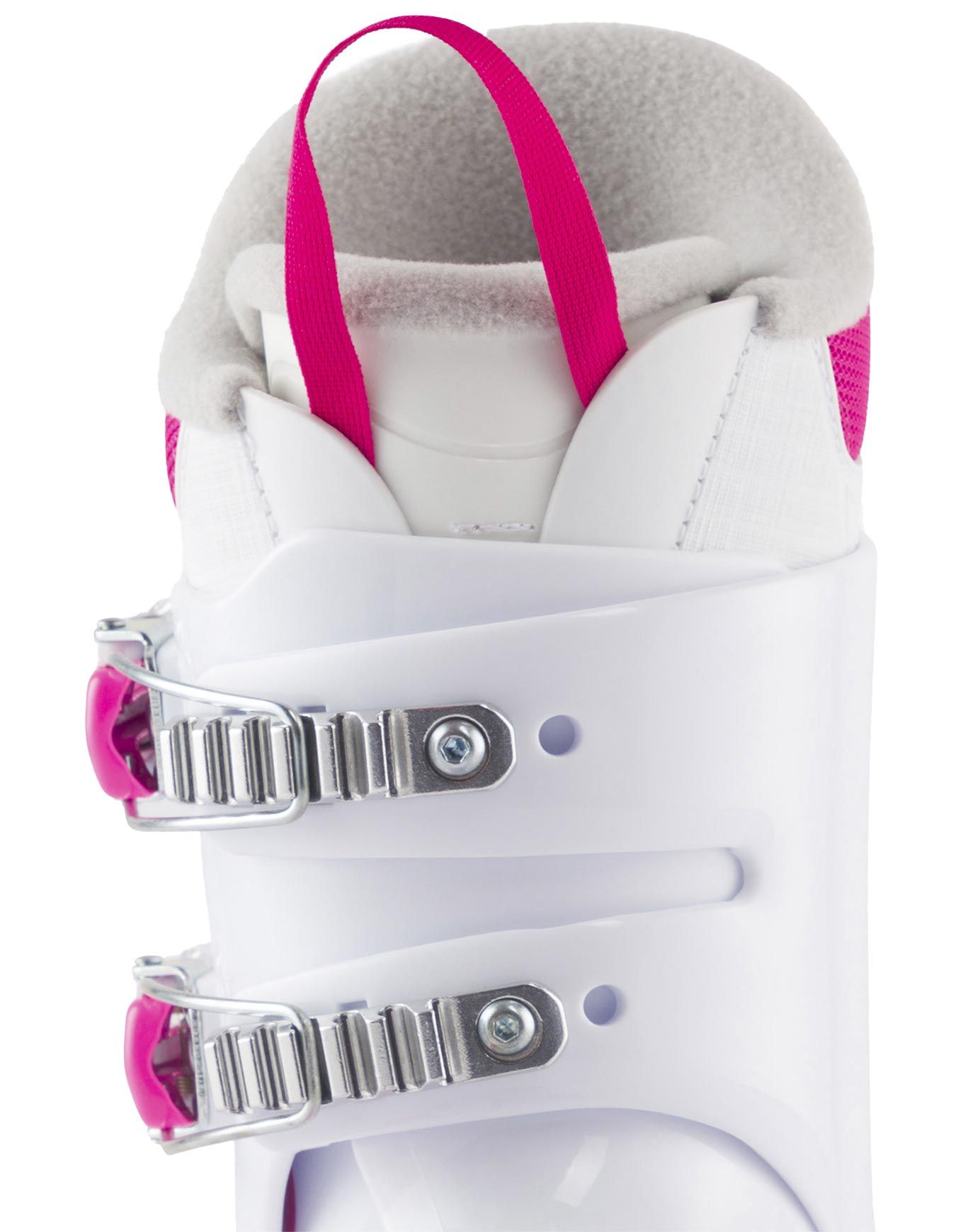 Une unique boucle de serrage située au niveau du cou-de-pied facilite l’habillage et offre un premier point d’appui solide pour évoluer sur les pistes débutantes. Avec un flex de 50, un soutien progressif est assuré, permettant à votre jeune skieur de progresser jusqu’à maîtriser parfaitement les pistes.