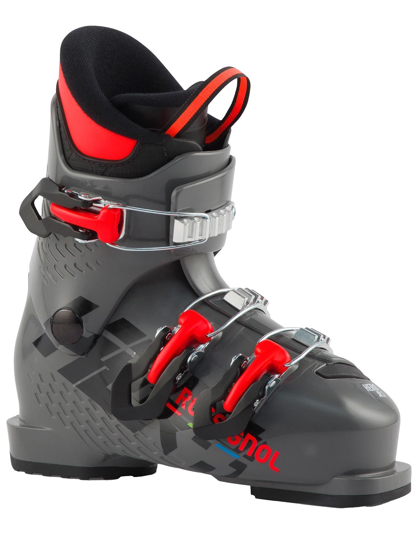 Chaussure de ski Rossignol Hero J3 pour enfants chaussant jusqu’au 33 : flex 40, 3 boucles, chaleur et confort optimisés pour progresser facilement.