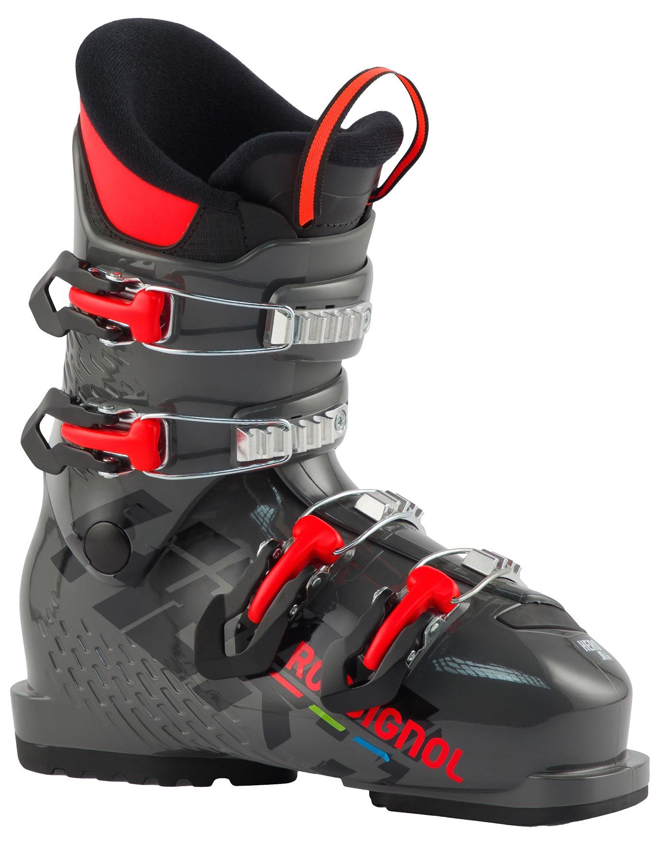 Chaussure de ski Rossignol Hero J4 junior, flex 50, 4 boucles, chausse 34-41. Facile à enfiler, chaude et confortable, elle aide l’enfant à progresser en toute sécurité sur les pistes.