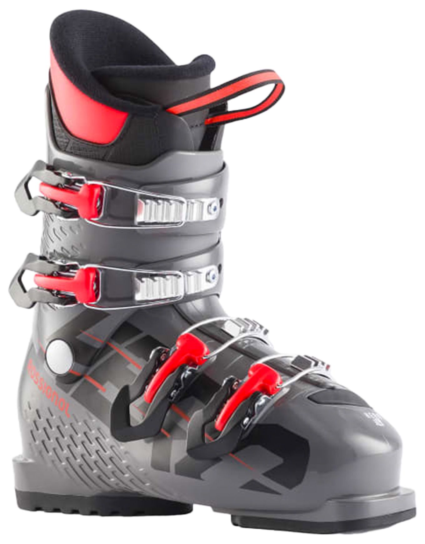 Chaussure de ski Rossignol Hero J4 junior, flex 50, 4 boucles, chausse 34-41. Facile à enfiler, chaude et confortable, elle aide l’enfant à progresser en toute sécurité sur les pistes.
