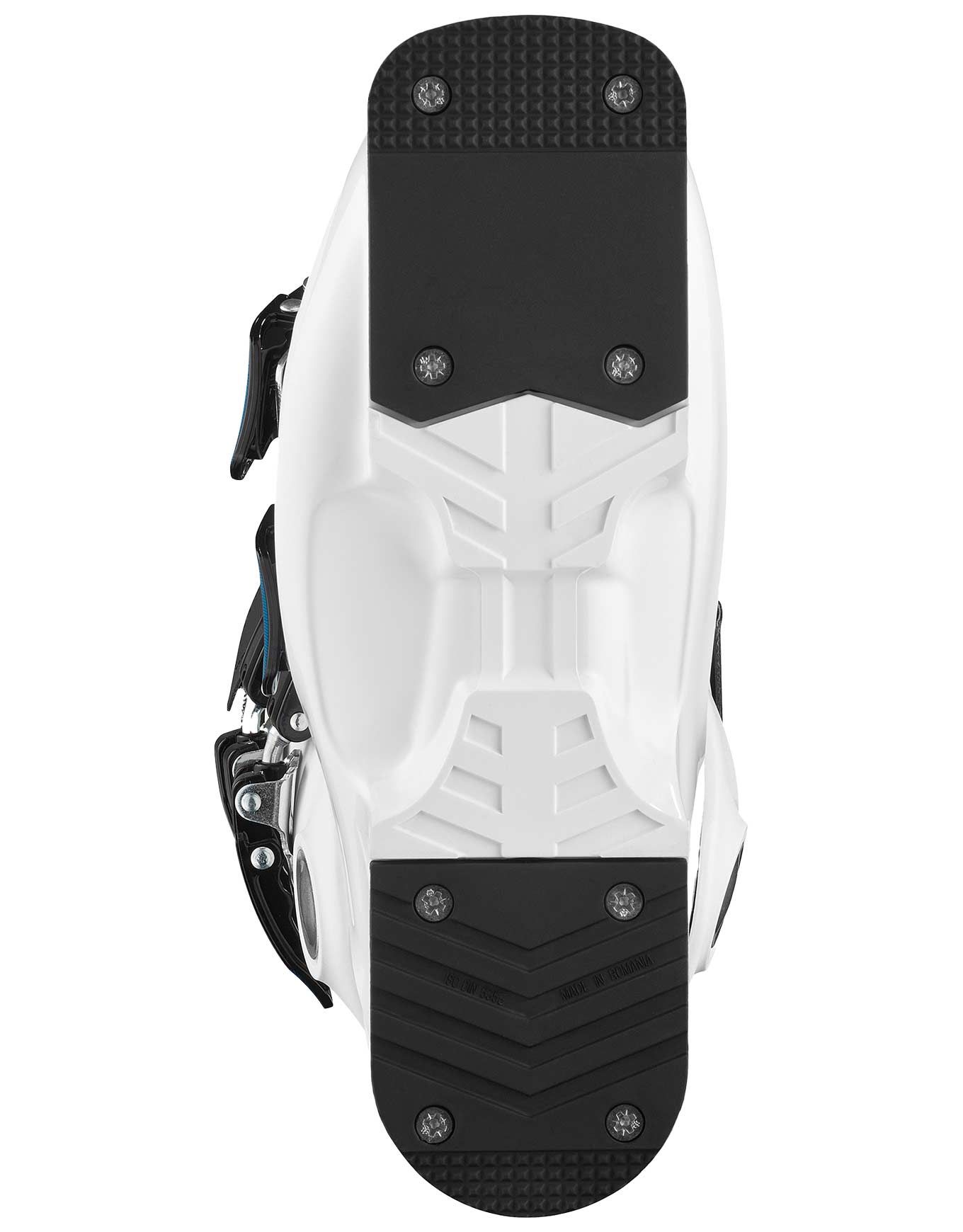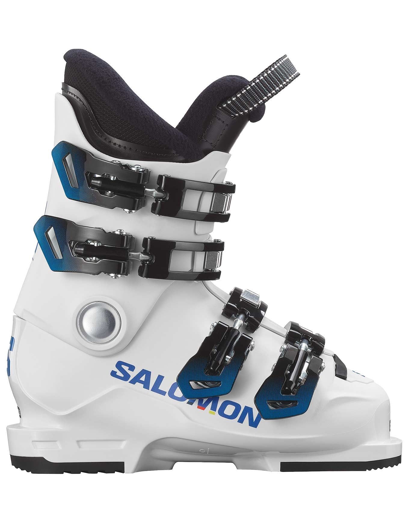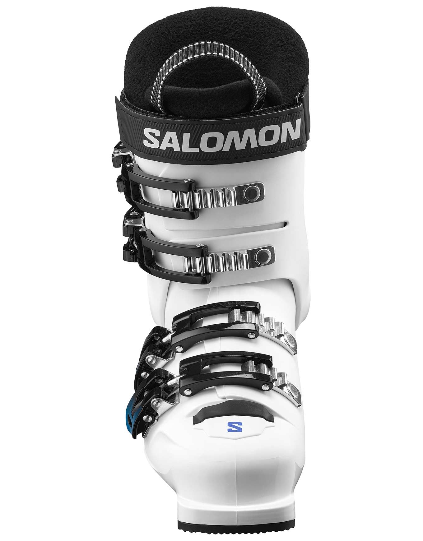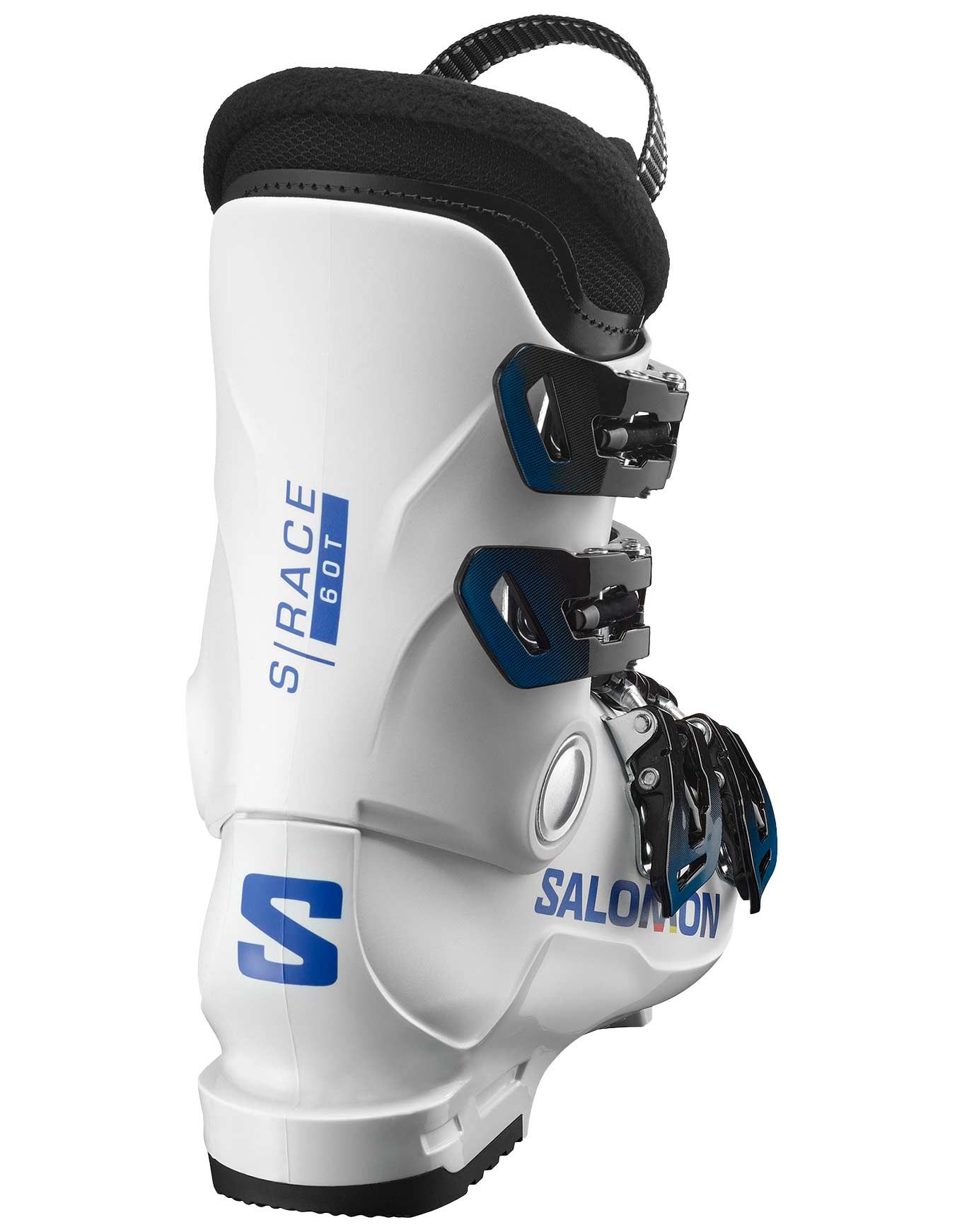 Salomon S/Race 60T M White/White/Process Blue, chaussure de ski de piste enfant, offre rigidité 60, transmission puissance Oversized Pivot, chausson Thermic Fit Junior et coque Twinframe pour confort et réactivité sur piste.