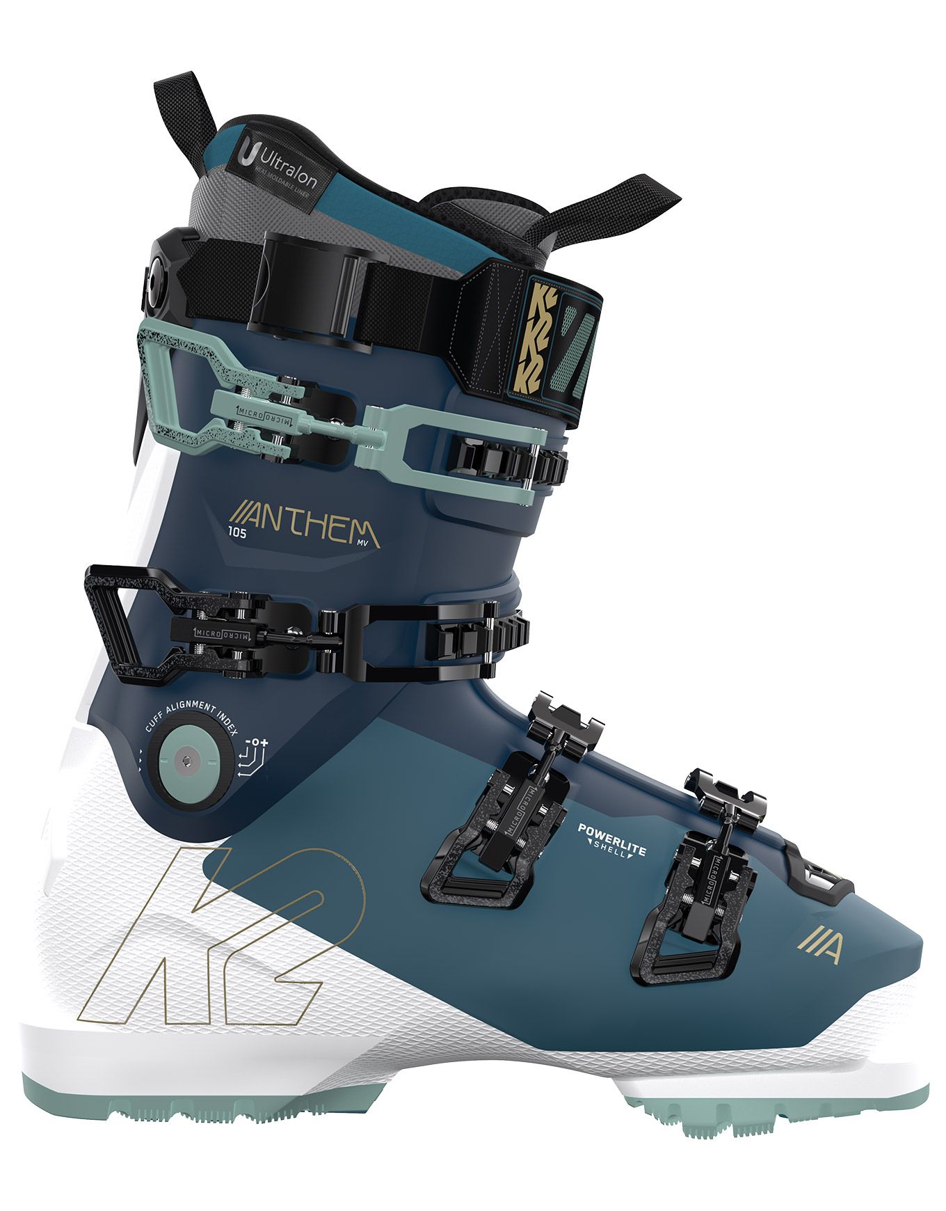 Chaussures de ski K2 Anthem 105 femme combinant légèreté, puissance et confort grâce à la coque Powerlite Shell, au maintien PrecisionFit Pro et à l’accès facilité Fastfit Instep pour une réactivité optimale sur piste.