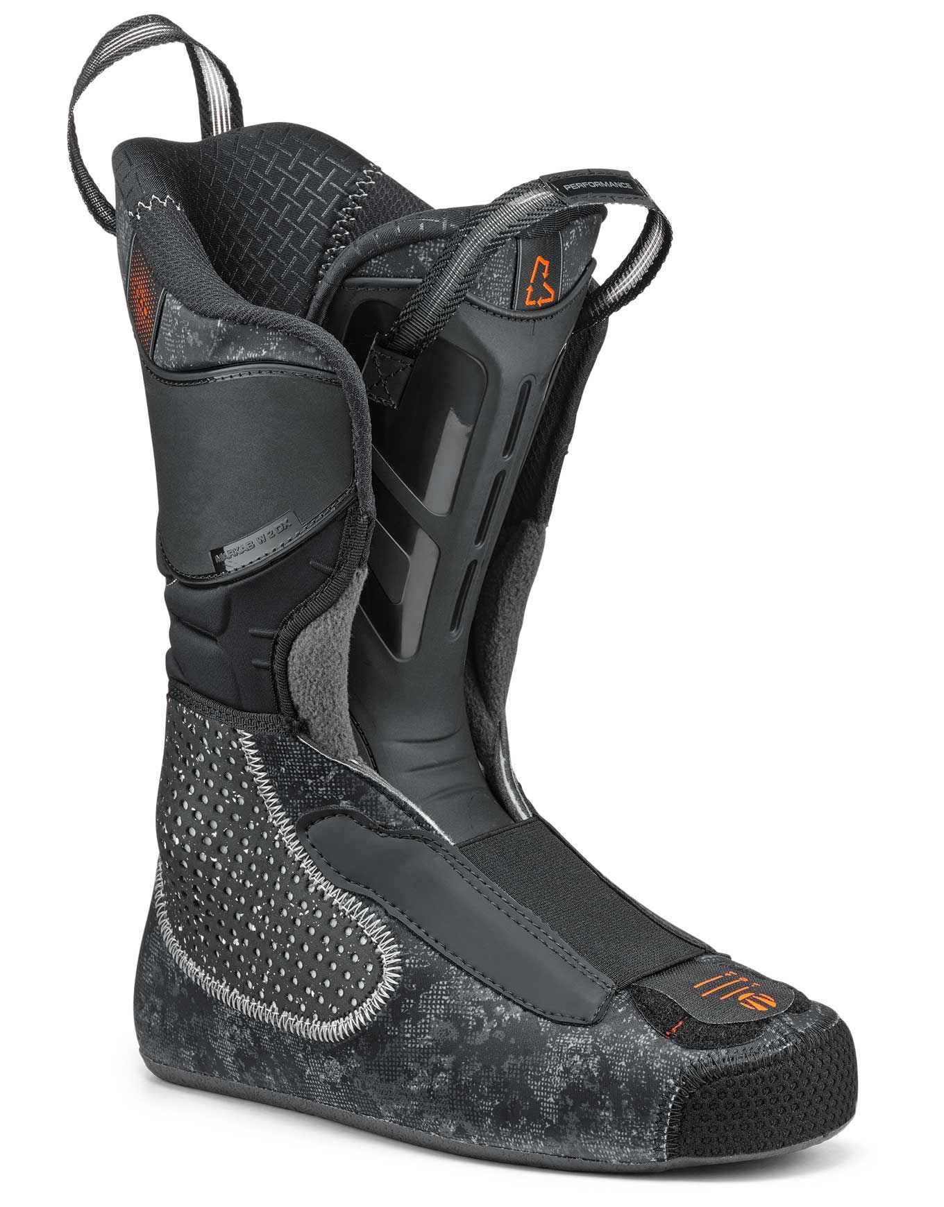 L’enfilage et le retrait de la chaussure sont facilités par la technologie Quick Instep. Des approches en ski de randonnée sont également rendues possibles par ce modèle équipé de semelles Grip Walk, d’inserts Low Tech et d’un levier ski/marche offrant une amplitude de 55° en mode marche.