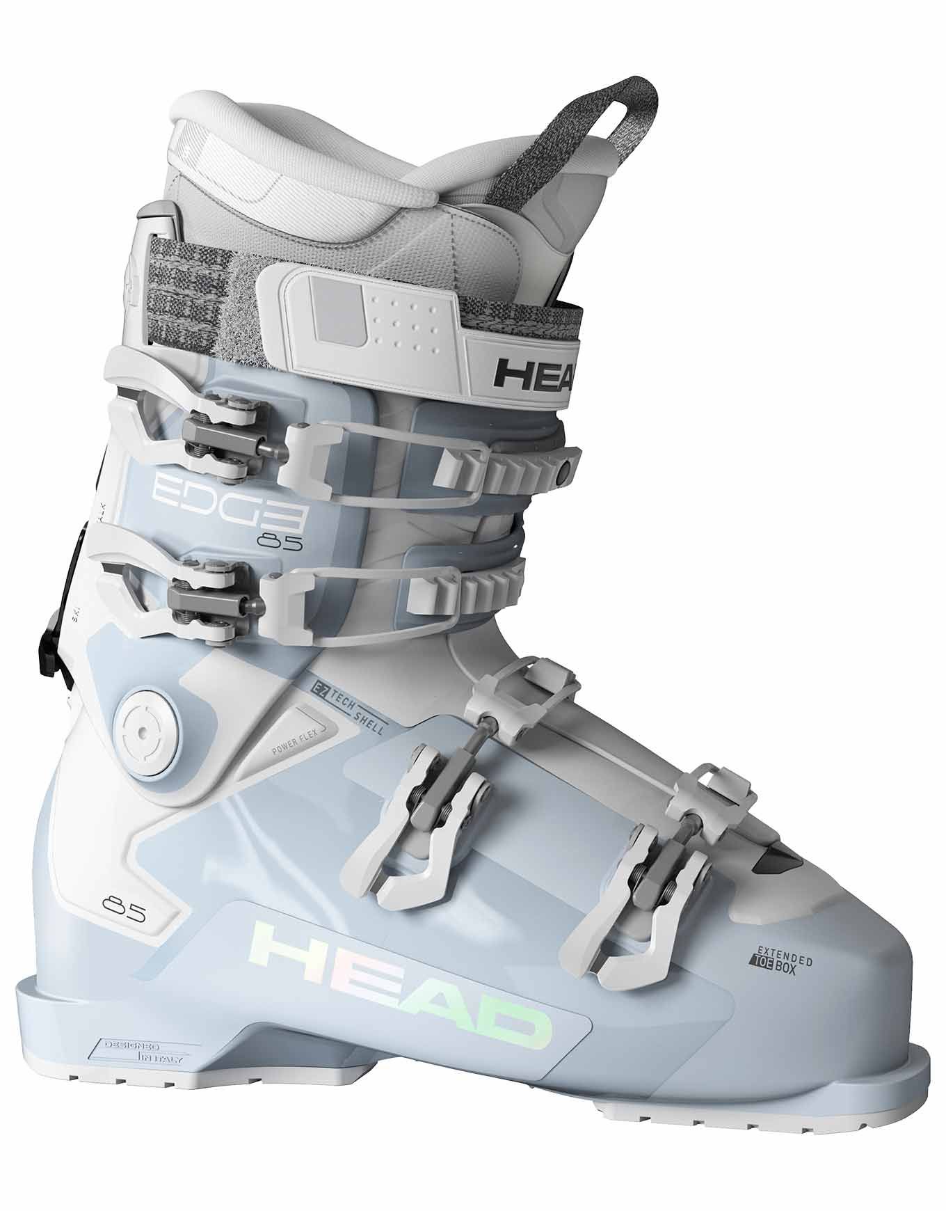 Chaussure de ski Head Edge 85 W Hv Ice pour femmes all-mountain, flex 85, coque tri-injectée au graphène, chausson Perfect Fit S W, largeur 100 mm, semelle GripWalk et système EZ-Tech pour chaussage mains-libres, confort et précision affirmés sur tout le domaine.