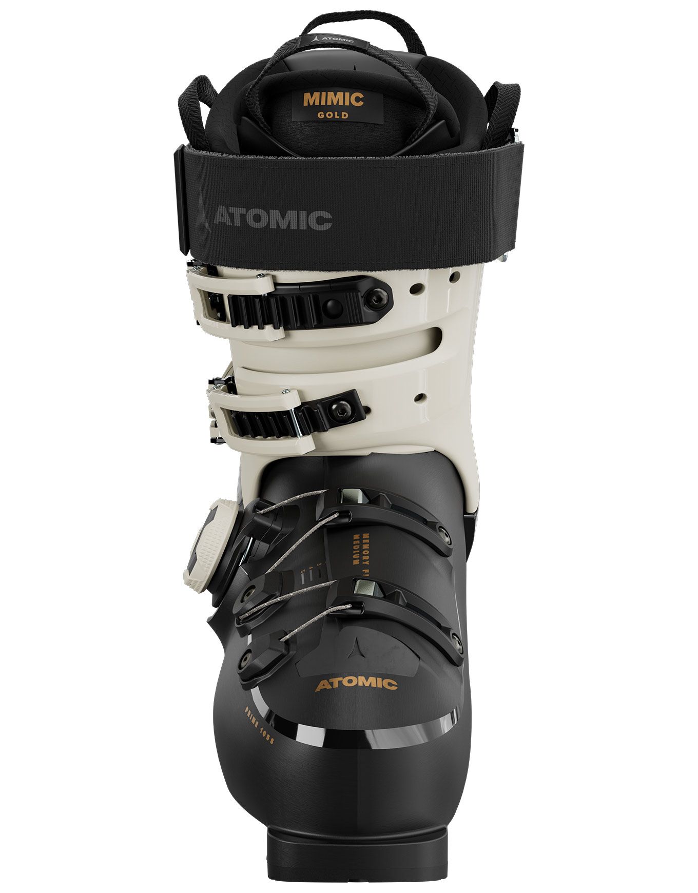 Chaussures de ski alpin femme Atomic Hawx Prime 105 S Boa Black/Teal, construction Prolite légère, chausson Mimic Gold thermoformable, serrage Boa sans points de pression, flex 105 pour skieuses expertes.