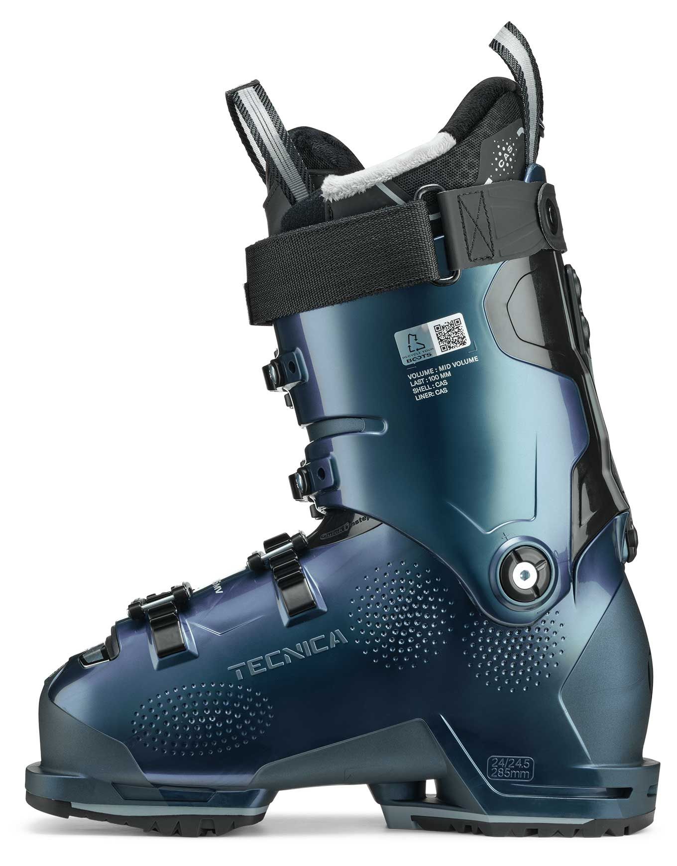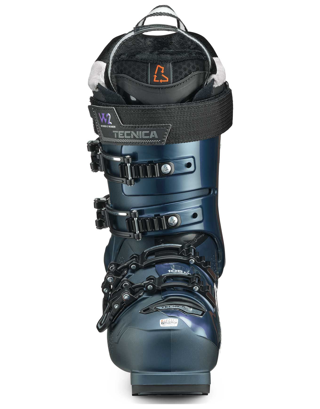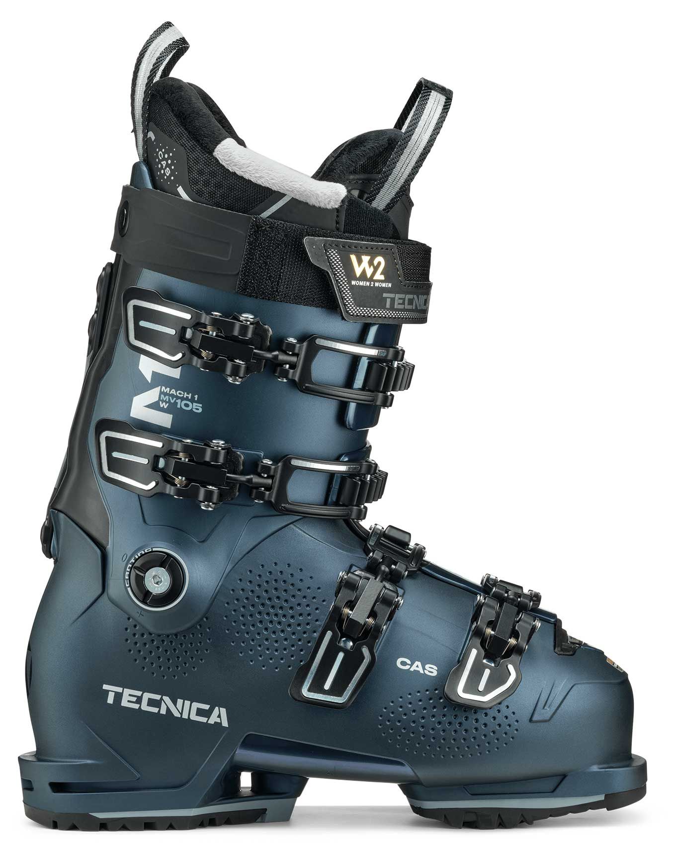 Chaussure de ski femme Tecnica Mach1 MV 105 W TD GW, volume moyen 100 mm, flex 105 précis mais accessible, chausson et coque CAS ultra-ergonomiques pour ajustement personnalisé, technologie T-Drive pour puissance latérale et transition rapide carre à carre, confort durable journée complète.