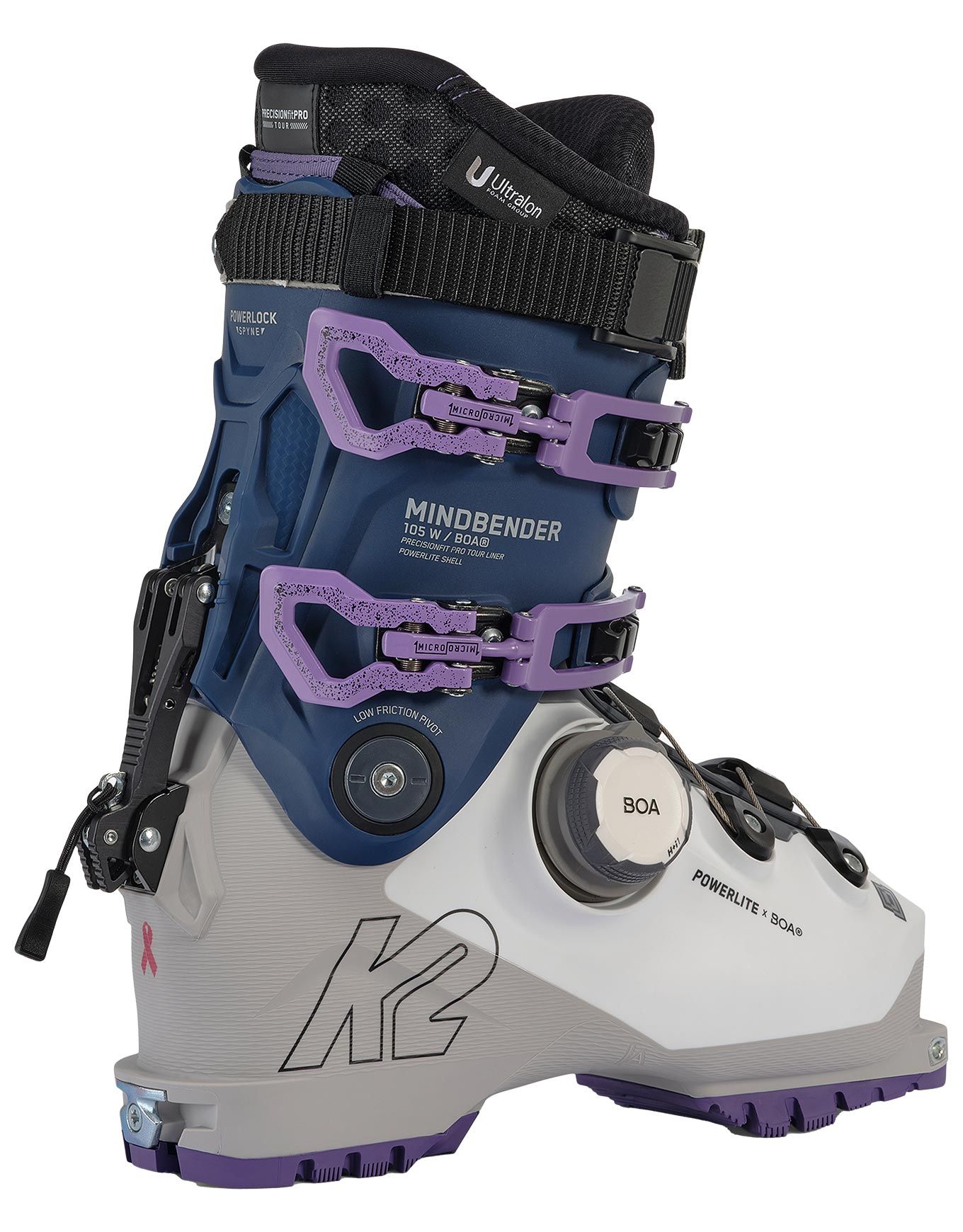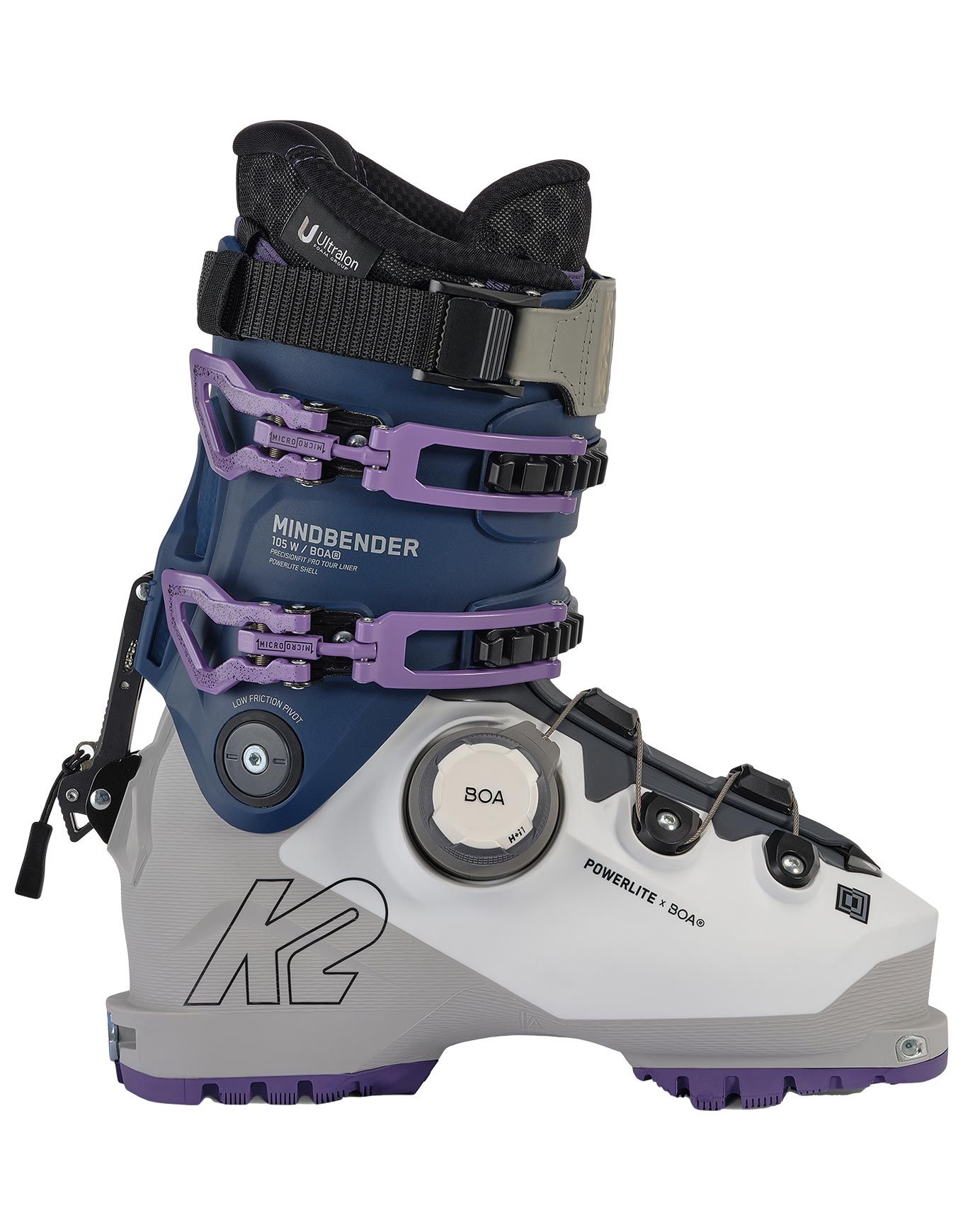La coque la plus performante de K2 est la Powerlite ShellDes parois d’épaisseurs variables et quatre types de TPU différents sont employés pour obtenir un compromis optimal entre légèreté et réactivité. S’y ajoute la technologie MultiFit™ Last grâce à laquelle la chaussure s’adapte à une diversité de morphologies, de 97 à 100 mm, évitant ainsi le recours à plusieurs modèles pour obtenir un ajustement sur mesure.