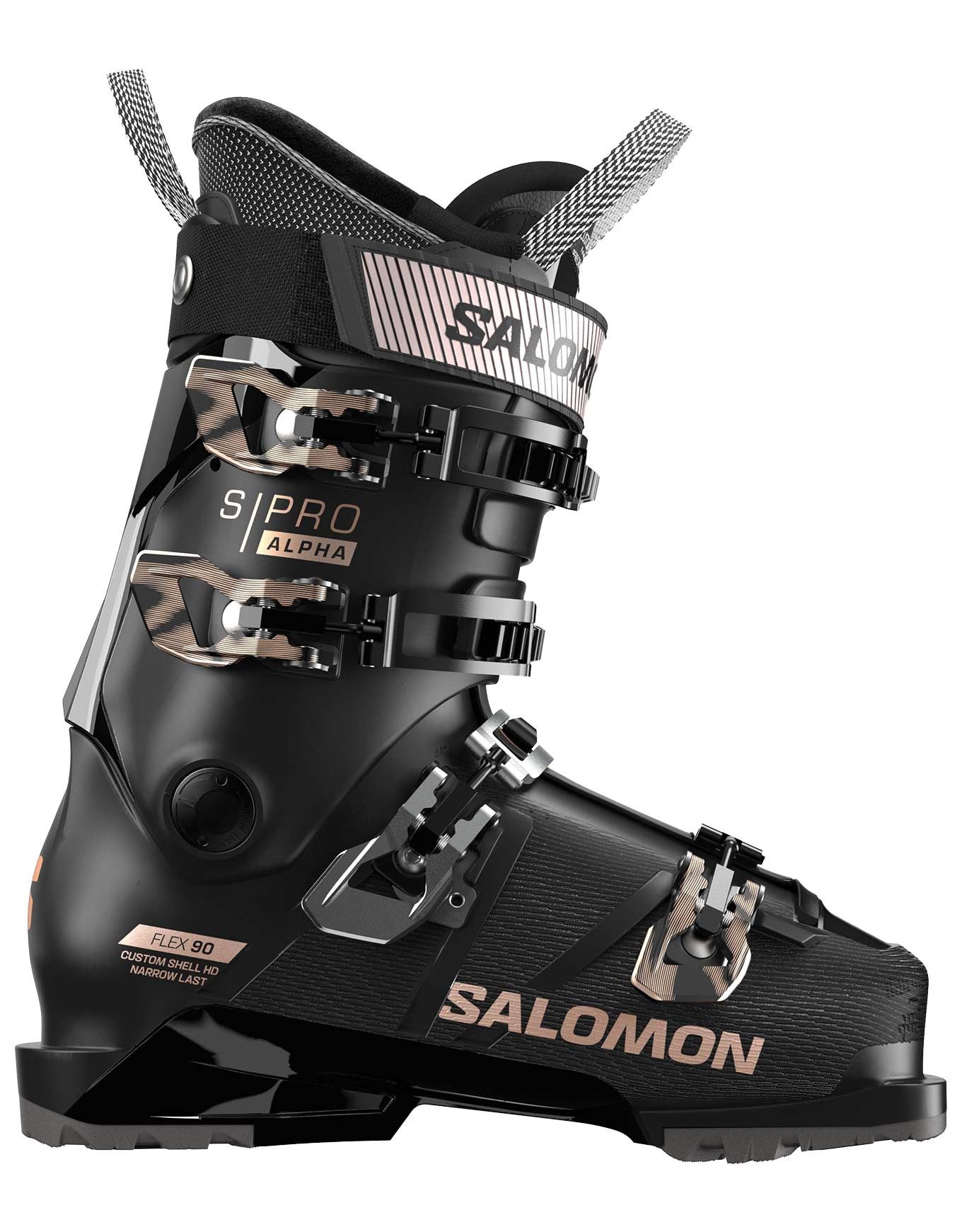 Chaussure de ski femme Salomon S/Pro Alpha 90 W Gw, flex 90 et chausson My CustomFit 4D Sport pour un maintien précis, coque Custom Shell HD 100 mm, GripWalk intégré.