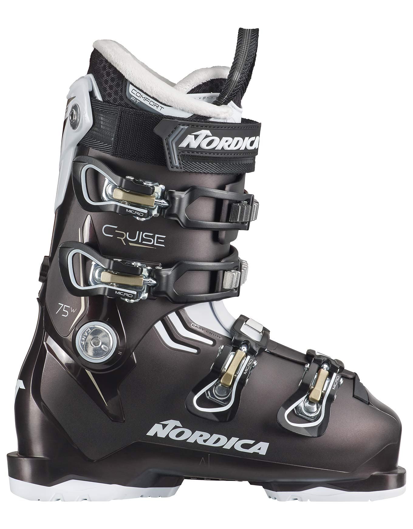 Chaussure de ski alpin Nordica The Cruise 75 W pour femme intermédiaire, largeur 104 mm, flex 75, systèmes Easy Entry et I.V.C. pour enfilage aisé et ajustement précis du volume.