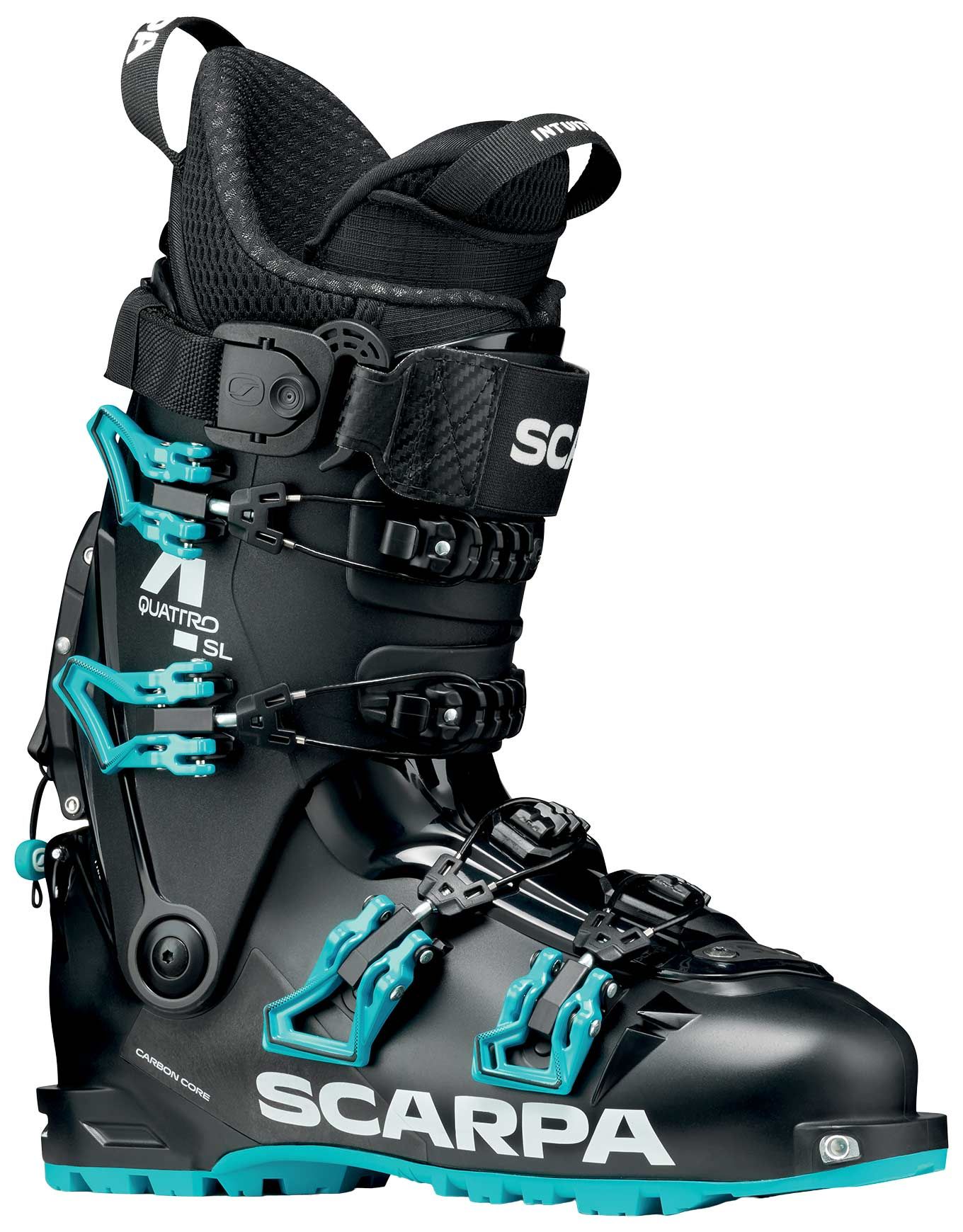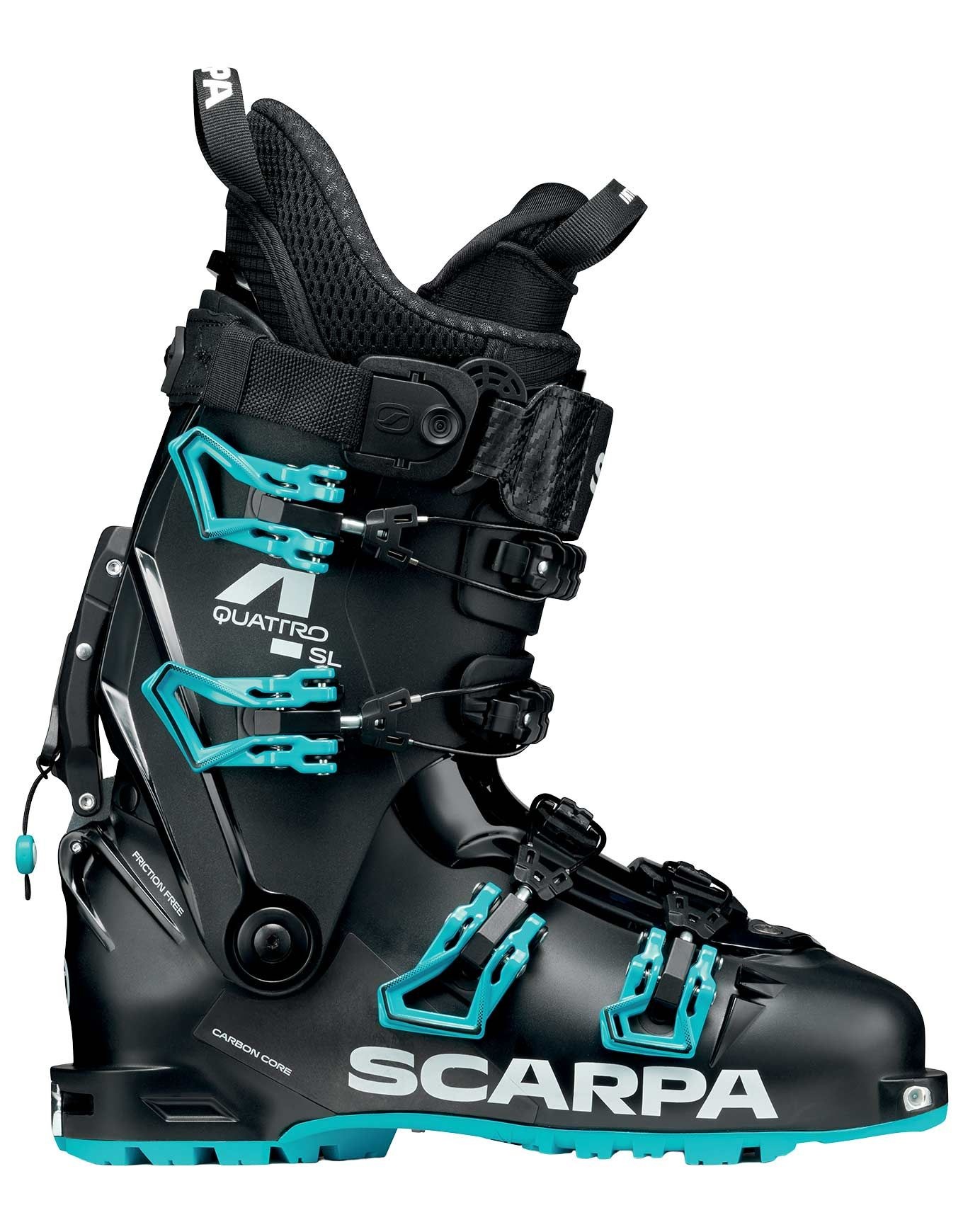La chaussure de ski de randonnée Scarpa 4-Quattro SL allie flex de 120, légèreté et maintien alpin grâce à sa construction Alpine Axial Hybrid en Pebax, son débattement de 61° et sa semelle Gripwalk Presa.