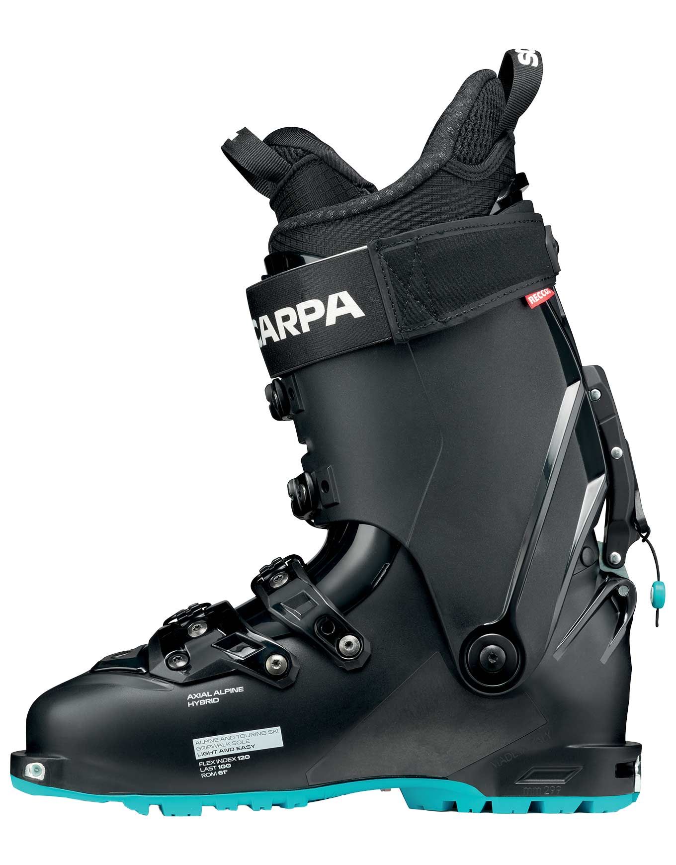 Quatre crochets disposés latéralement sur la coque caractérisent la construction Alpine Axial Hybrid, permettant un ajustement fin du médio-pied et de l’avant-pied pour un maintien personnalisé et optimal. La composition en Pebax de la coque, du collier et de la languette privilégie la durabilité écologique, diminuant l’empreinte environnementale de l’équipement. La présence d’un insert carbone au sein de la coque optimise la réactivité et la précision du chaussant.