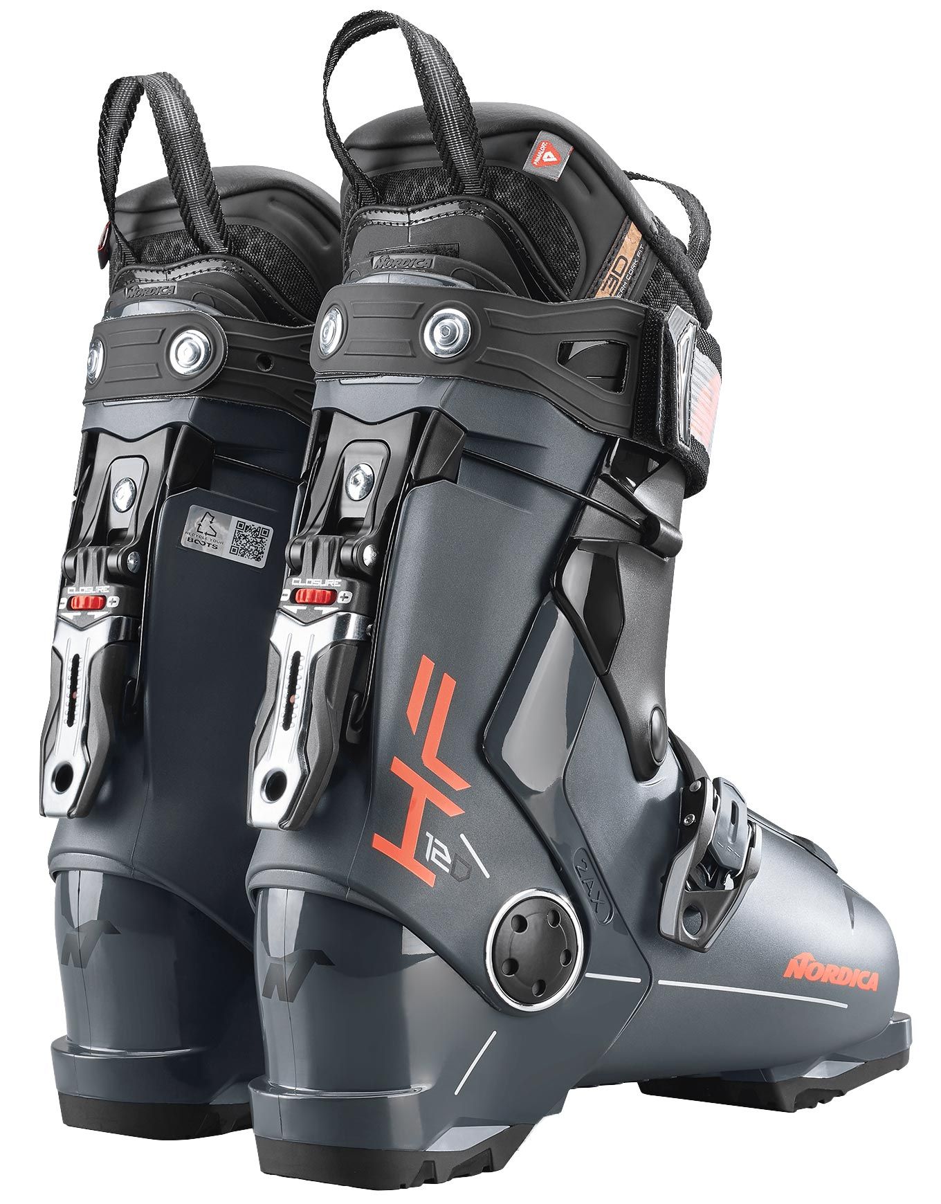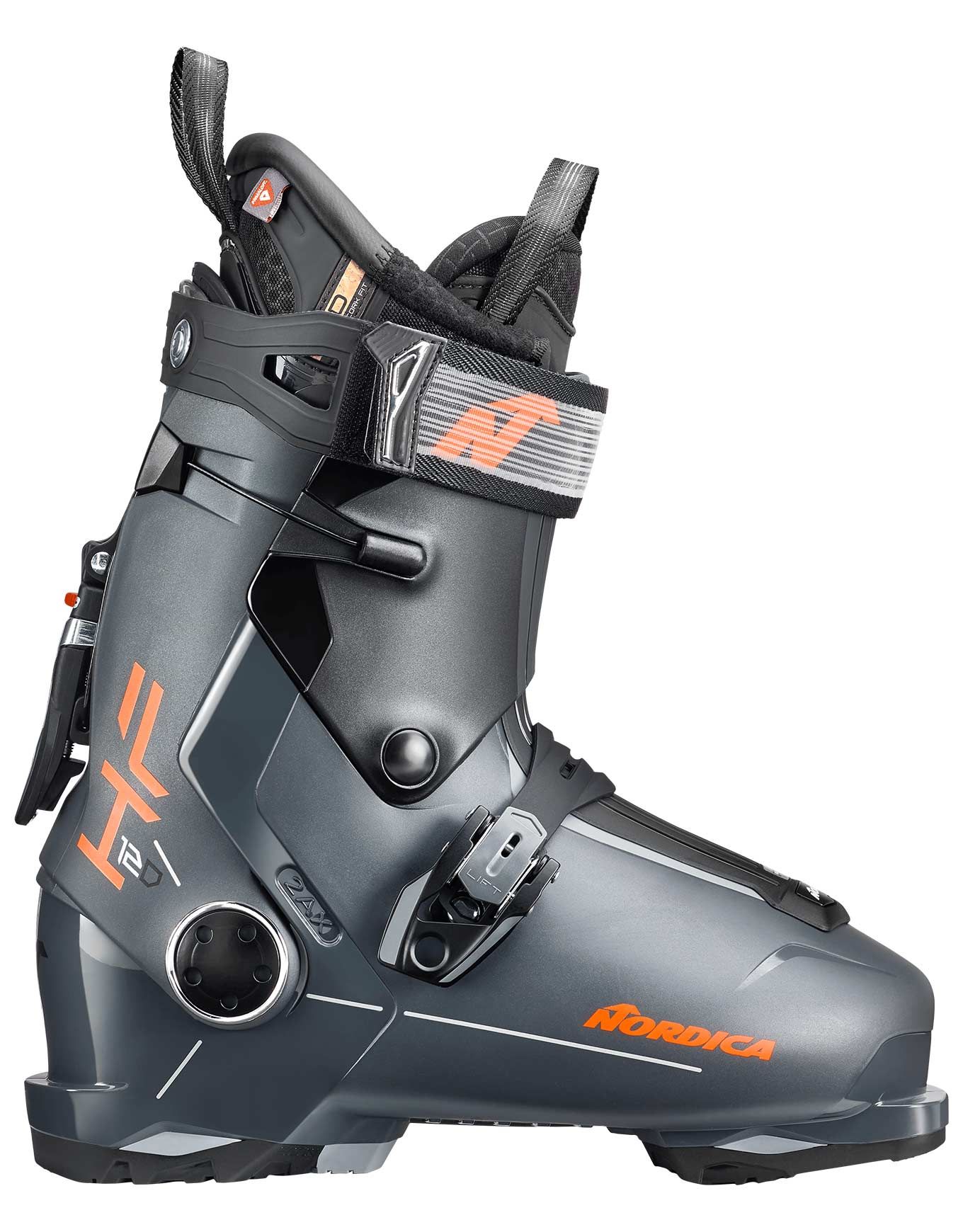 Chaussure de ski alpin Nordica HF 120 GW pour homme confirmé, combinant performance et confort avec chausson 3D Cork Fit Primaloft®, système Easy Entry Shell, fermeture Back Buckle sans mains et semelles Grip Walk®.