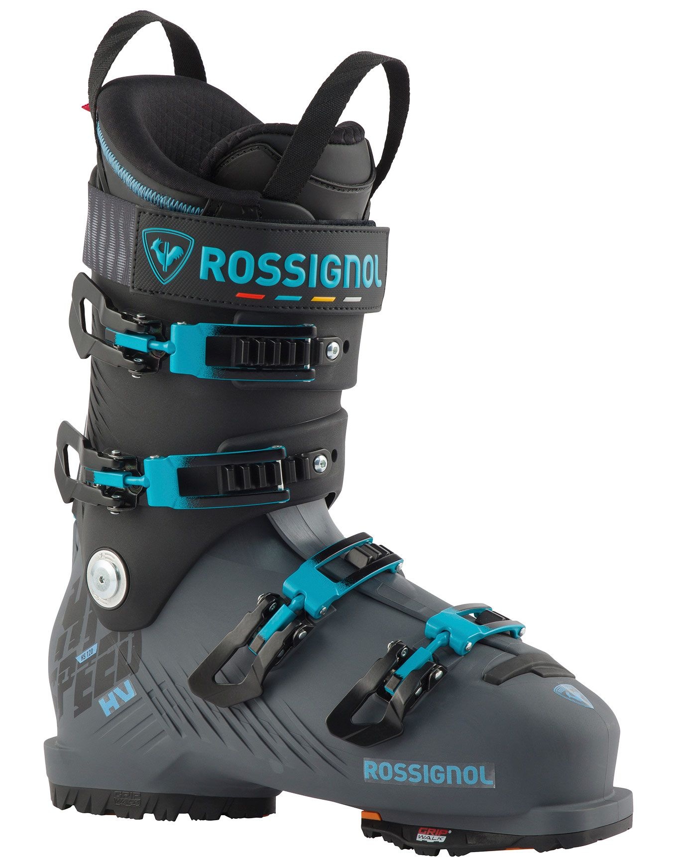 Chaussure de ski homme Rossignol Hi Speed 120 Hv Gw, flex 120 et last 102 mm, précise et puissante. Chausson préformé, flex ajustable 115-125, réglages avancée et inclinaison pour un fit personnalisé.