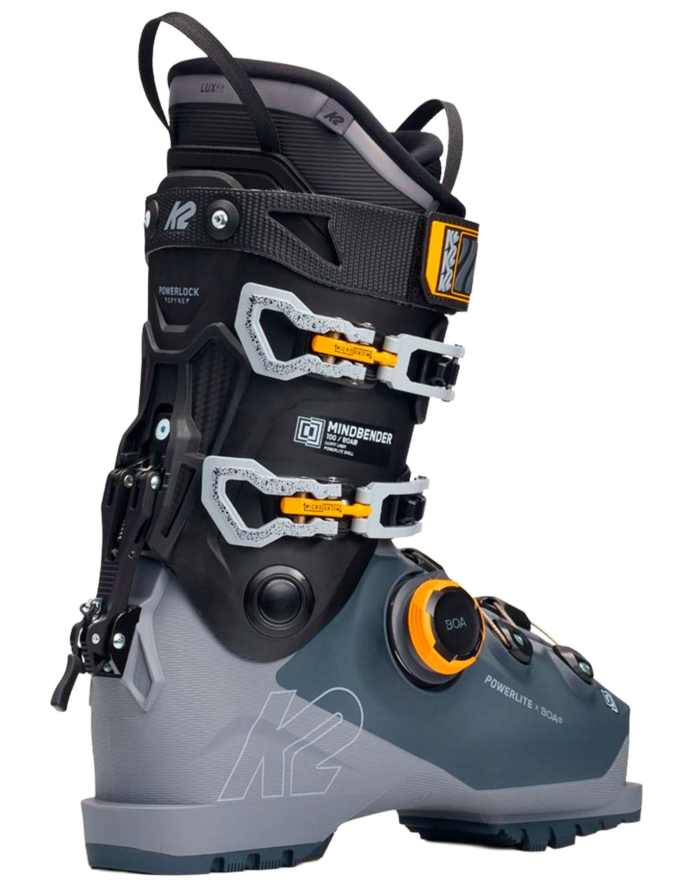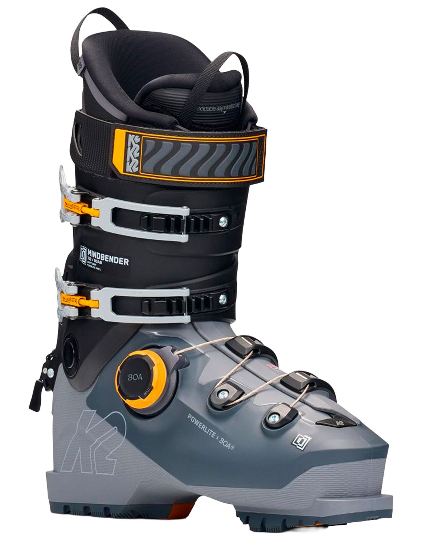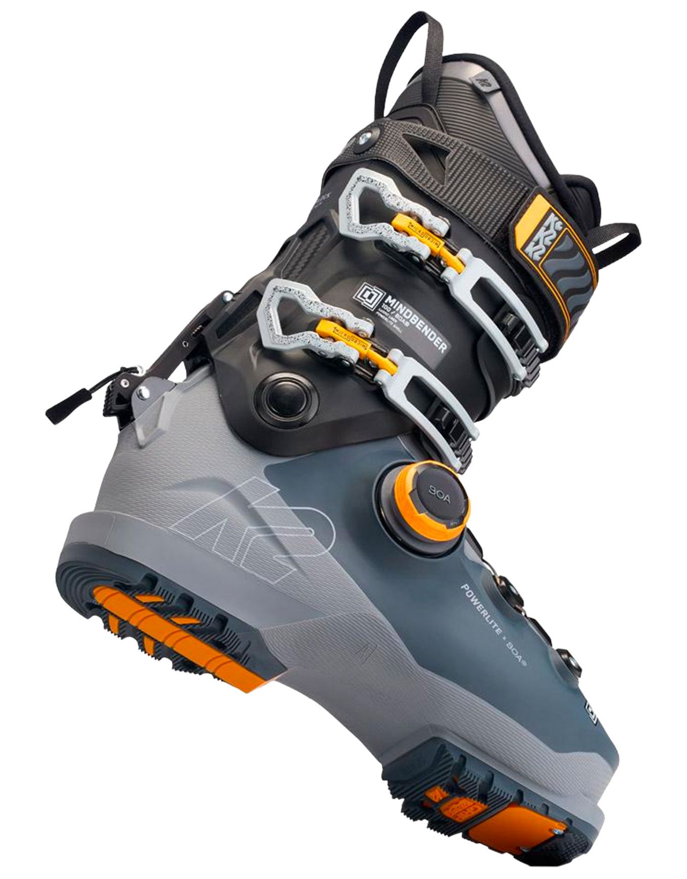 Chaussures de ski K2 Mindbender 100 Boa 2026 pour skieurs intermédiaires, combinant ajustement micro-ajustable Boa®, coque Powerlite légère et réactive, et amplitude 50° pour ski de randonnée.