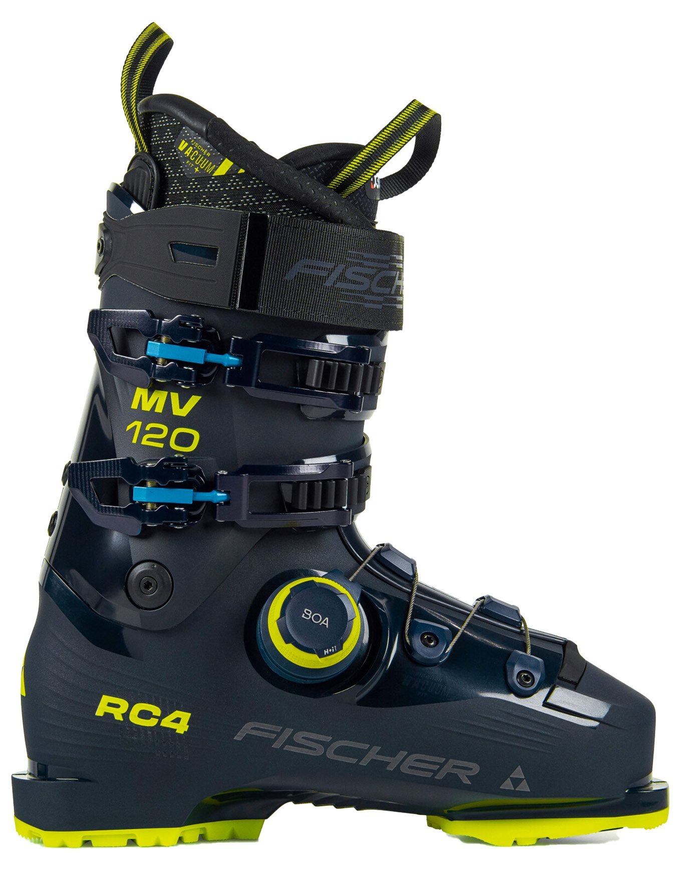 Avec un chaussant moyen de 100 mm, la RC4 120 Mv Boa Vacuum Gw combine précision et confort. Le fit optimal est obtenu par un chausson ajusté, tandis que le serrage précis et résistant est assuré par 2 crochets réglables, une lanière Velcro 45 mm et le BOA® Fit System – H+i1. Un ajustement parfait est ainsi garanti. La rigidité et la précision nécessaires aux skieurs de bon niveau pour tracer des courbes, gagner en vitesse et skier avec engagement sont apportées par un flex de 120. Le fit idéal peut être déterminé grâce à l’application Fischer Scan Fit, qui permet notamment de comparer les fits entre différentes marques.