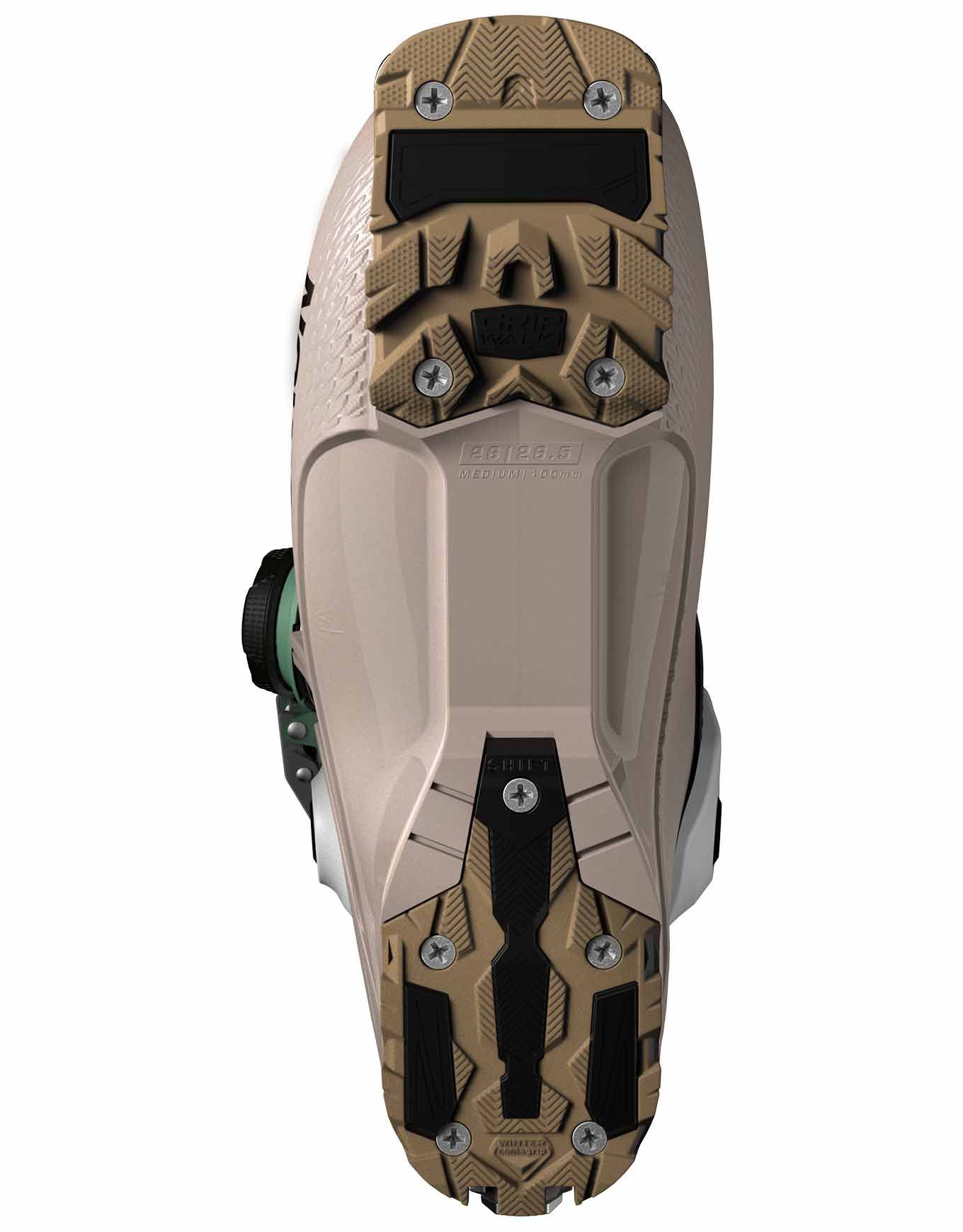 La présence d’un système Boa sur ce modèle autorise un ajustement rapide et précis, même les mains gantées, garantissant un maintien ergonomique optimal sans contraindre le pied ni les mouvements. Un flex de 100, qualifié d’intermédiaire, procure confort et souplesse tout en conservant une rigidité, une précision et une réactivité suffisantes pour accélérer durant les phases de descente. Un mécanisme débrayable permet de basculer d’un mode ski rigide vers un mode marche nettement plus souple.