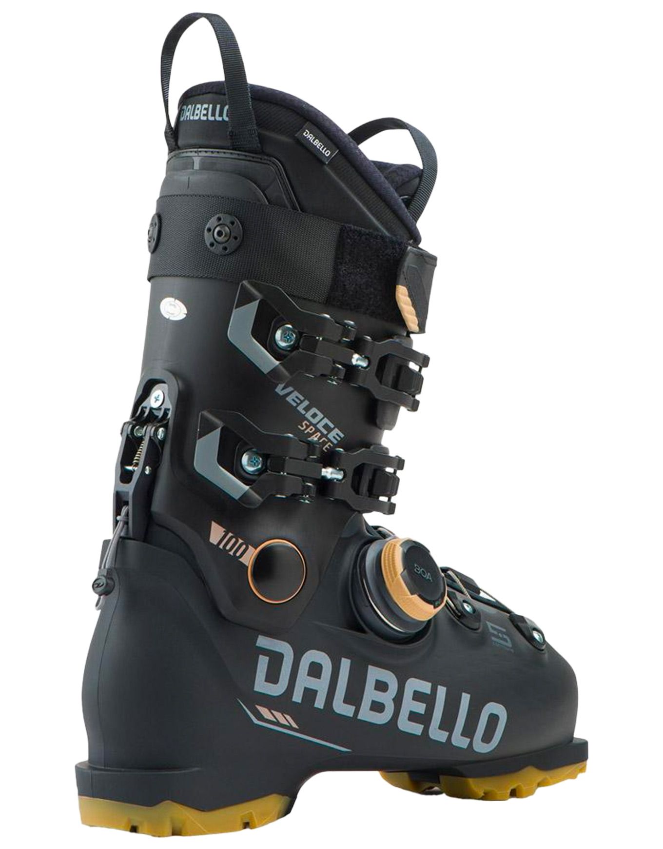Les chaussures de ski Dalbello Veloce Space 100 pour homme offrent un flex de 100, volume 101 mm, système BOA et triple crochet pour un équilibre réactivité-confort sur piste.