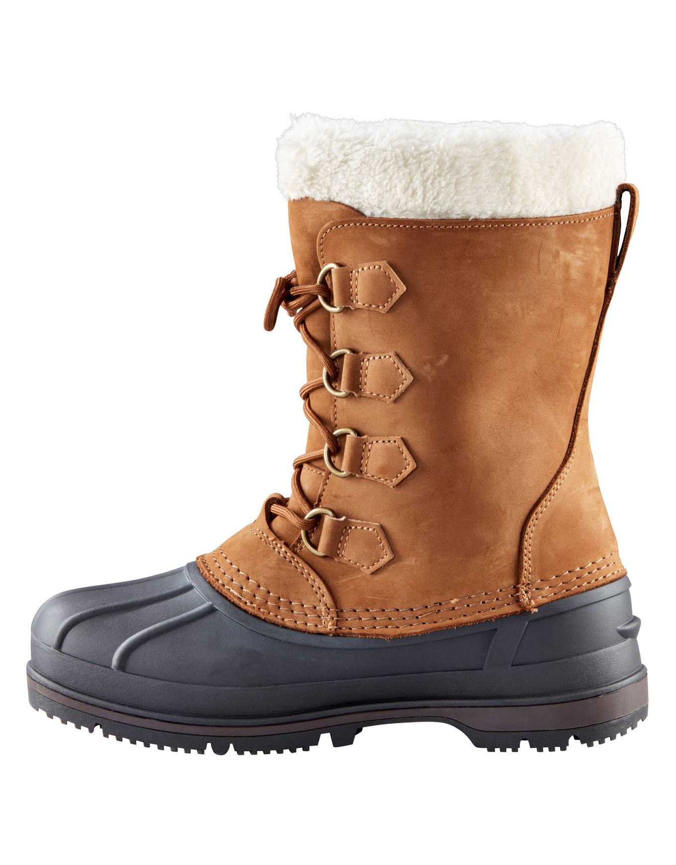 Canada W Brown, chaussures femme pour la marche hivernale, combinent cuir imperméable, fourrure thermique et semelle caoutchouc antidérapante pour chaleur, confort et traction sur neige.