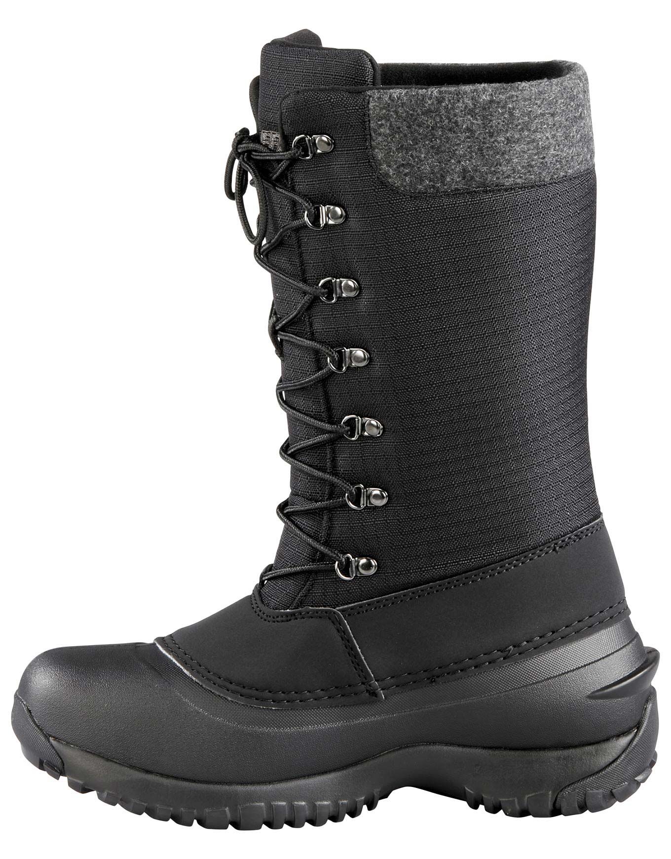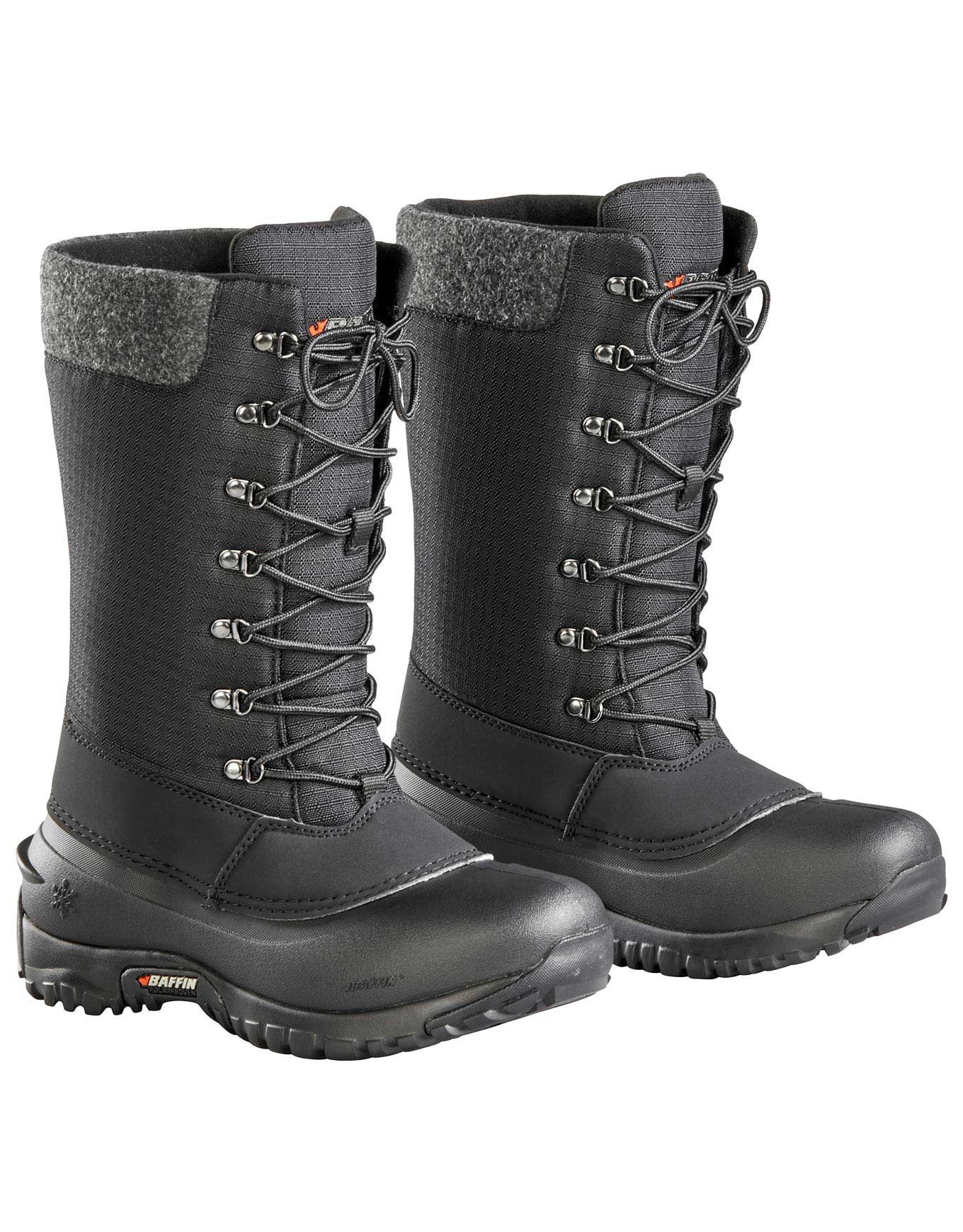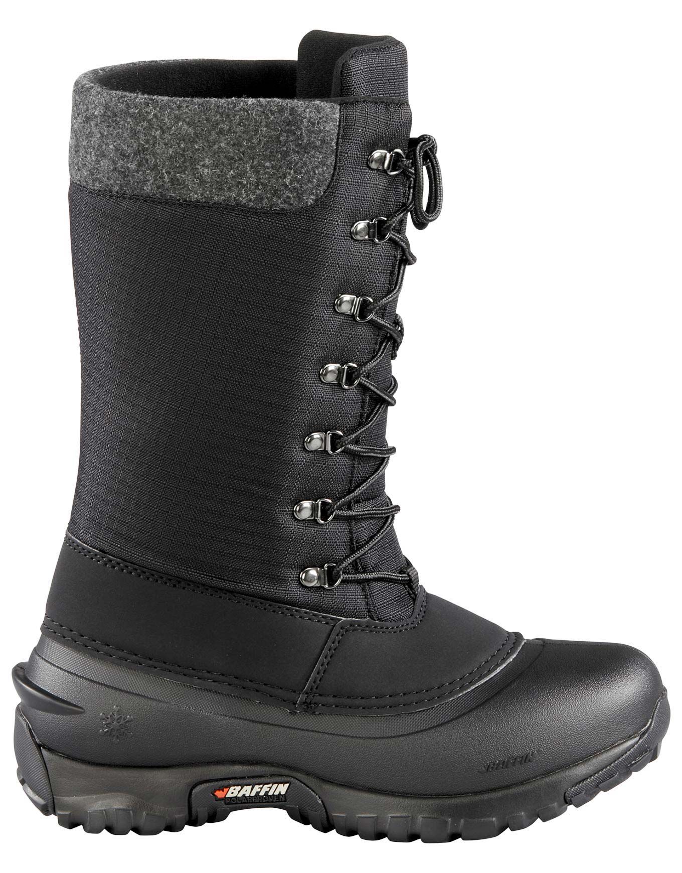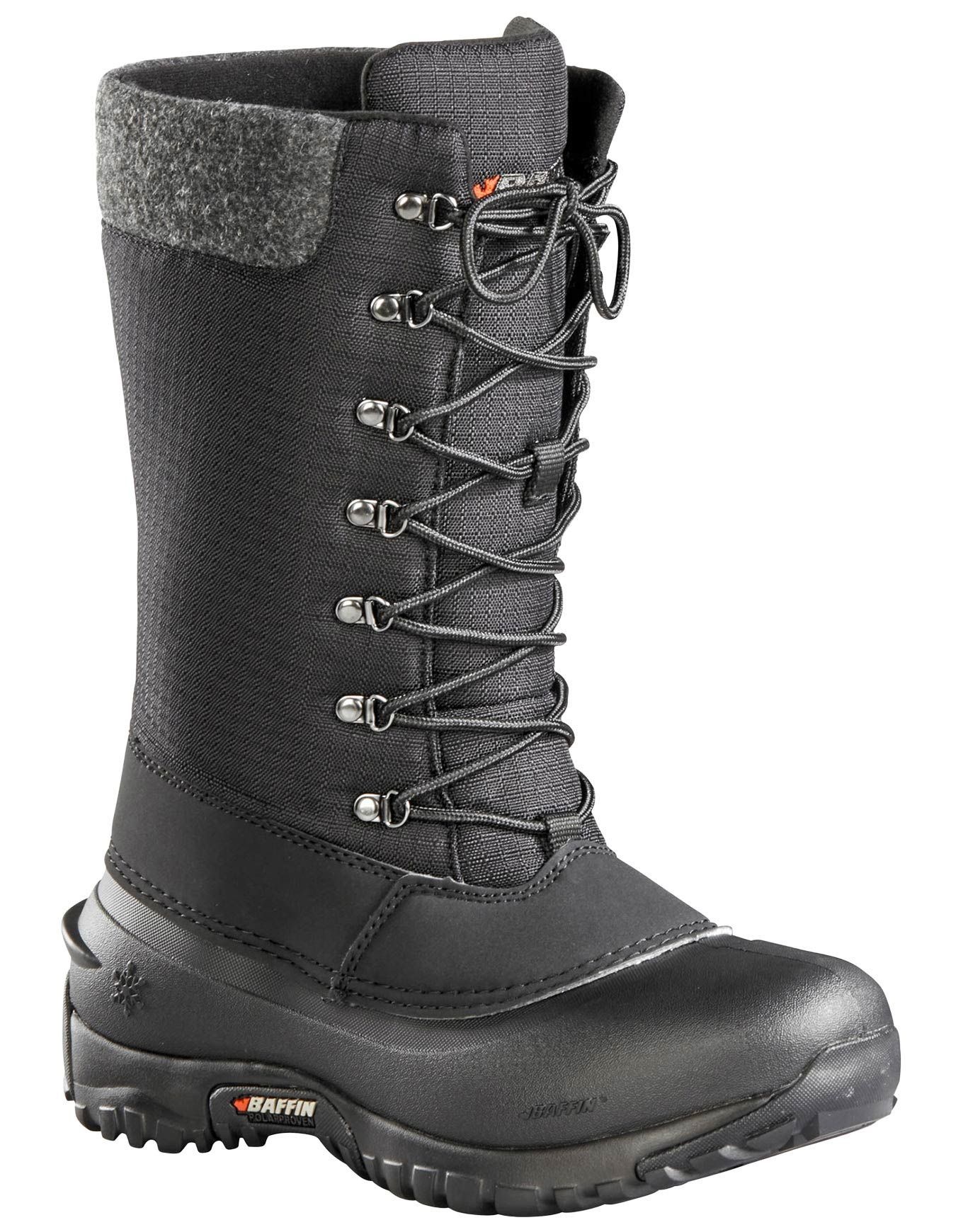 Baffin Jess Black, bottes hiver femme : tige haute imperméable, chausson Activ-Fit multicouche avec doublure Thermawick, isolation B-Tek Heat et Diamond Net coupe-vent, semelle Polar Rubber pour traction sur neige.