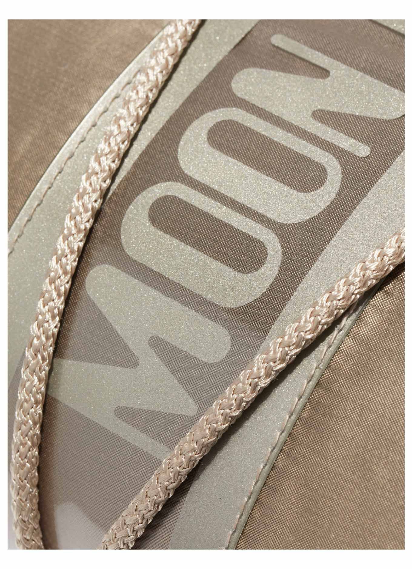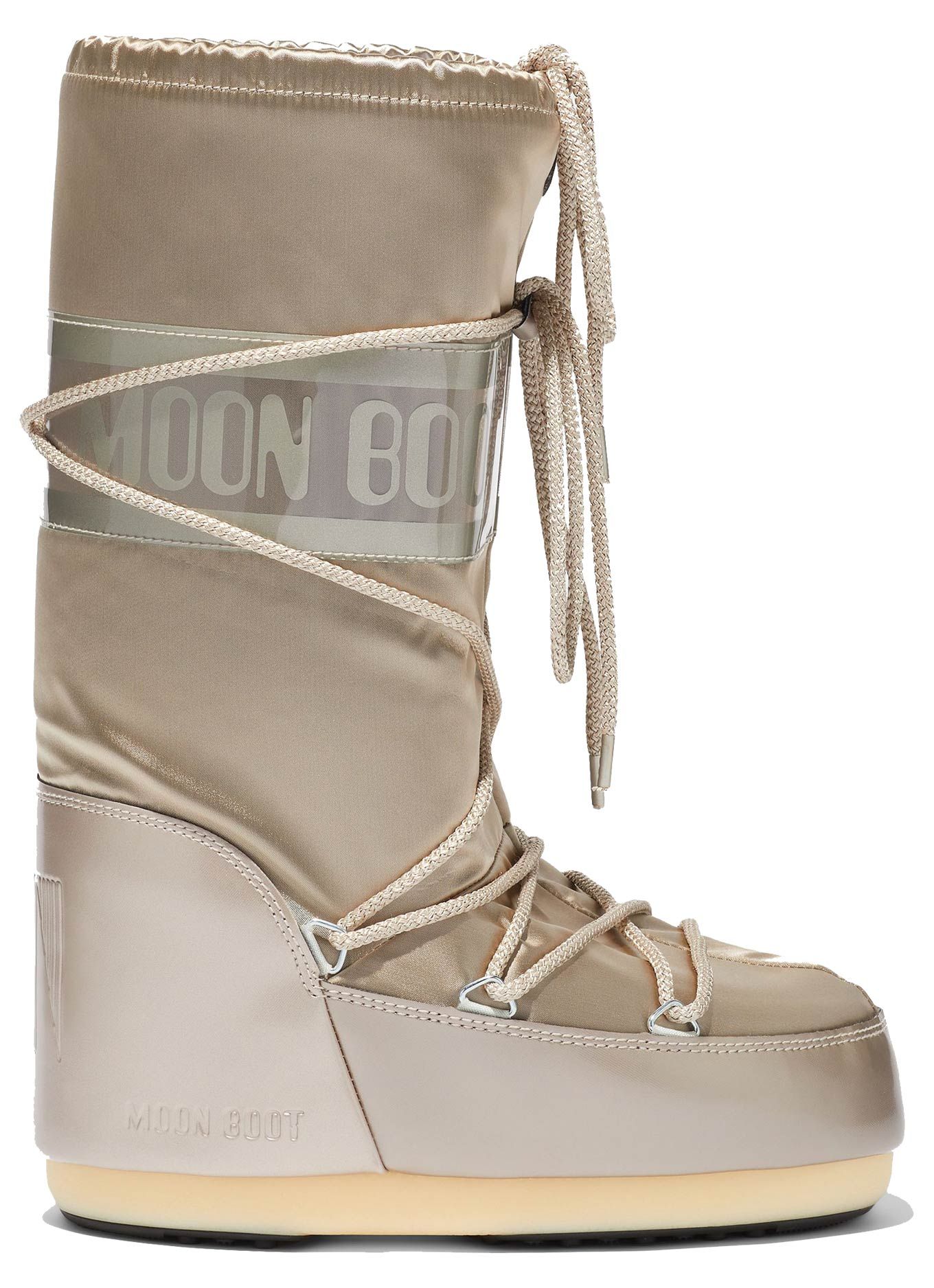 Moon Boot Icon Glance Platinum, après-ski femme/fille imperméable et chaud, allie confort, style tendance et finition métallisée mat-brillant.