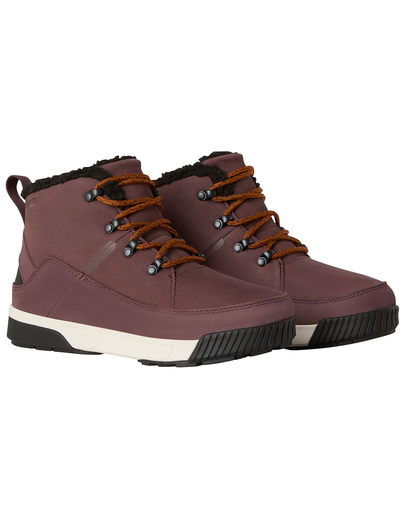 The North Face Sierra Mid Lace WP Tawny Quartz, bottes montantes femme en cuir pleine fleur imperméable, associent coutures scellées, semelle Ortholite® amortissante et SurfaceCTRL™ pour adhérence hivernale.
