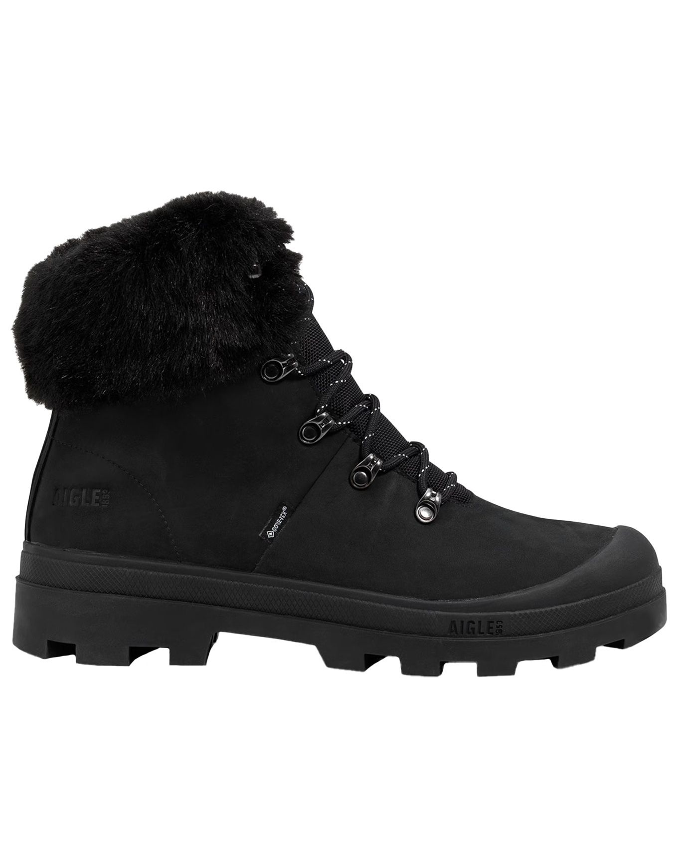 Chaussures de randonnée hivernale Aigle Tenere Gore-Tex F2 Black femme, en cuir responsable, membrane imperméable, tige respirante et semelle crantée pour chaleur et adhérence sur tout terrain.