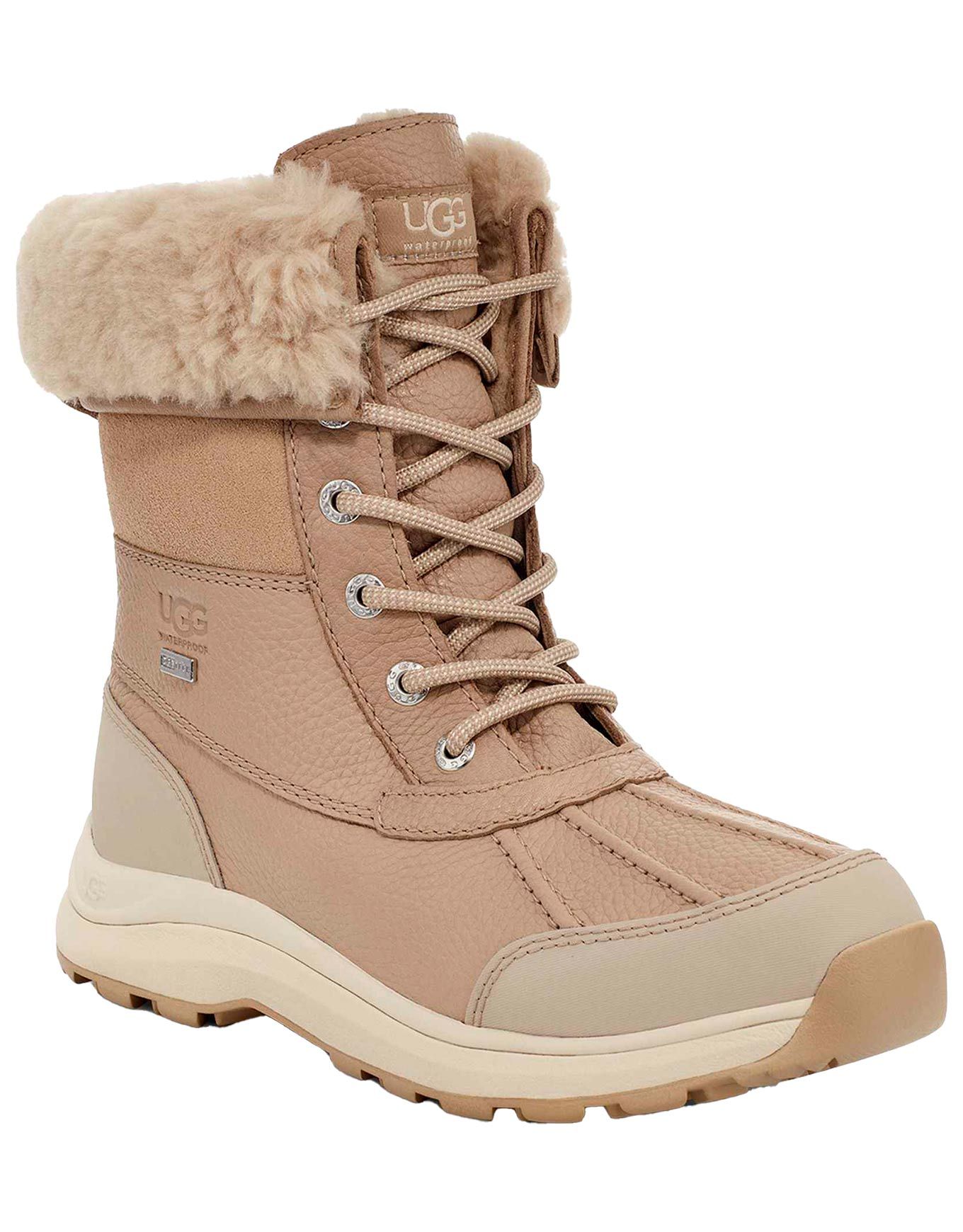Les bottes imperméables UGG Adirondack Boot III Mustard Seed pour femme allient isolation UGGpure™, semelle extérieure souple à -32 °C et coupe conçue pour le mouvement, assurant chaleur et confort en ville ou en montagne.