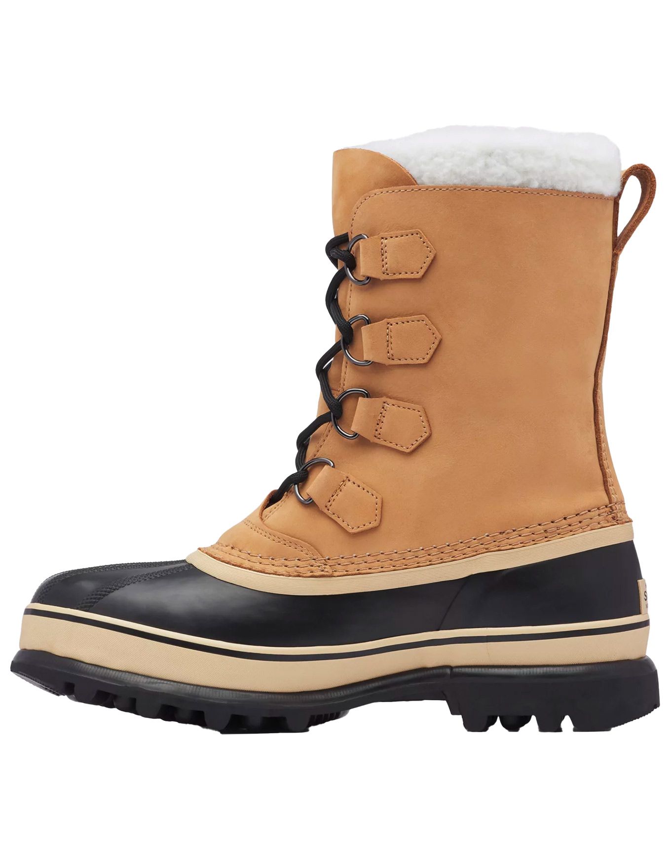 Bottes Caribou Wp Buff Sorel pour homme, conçues pour l’hiver rigoureux jusqu’à -40 °C : cuir nubuck imperméable, coque caoutchouc vulcanisé, chausson ThermoPlus® 9 mm amovible et semelle AeroTrac pour adhérence et isolation thermique.