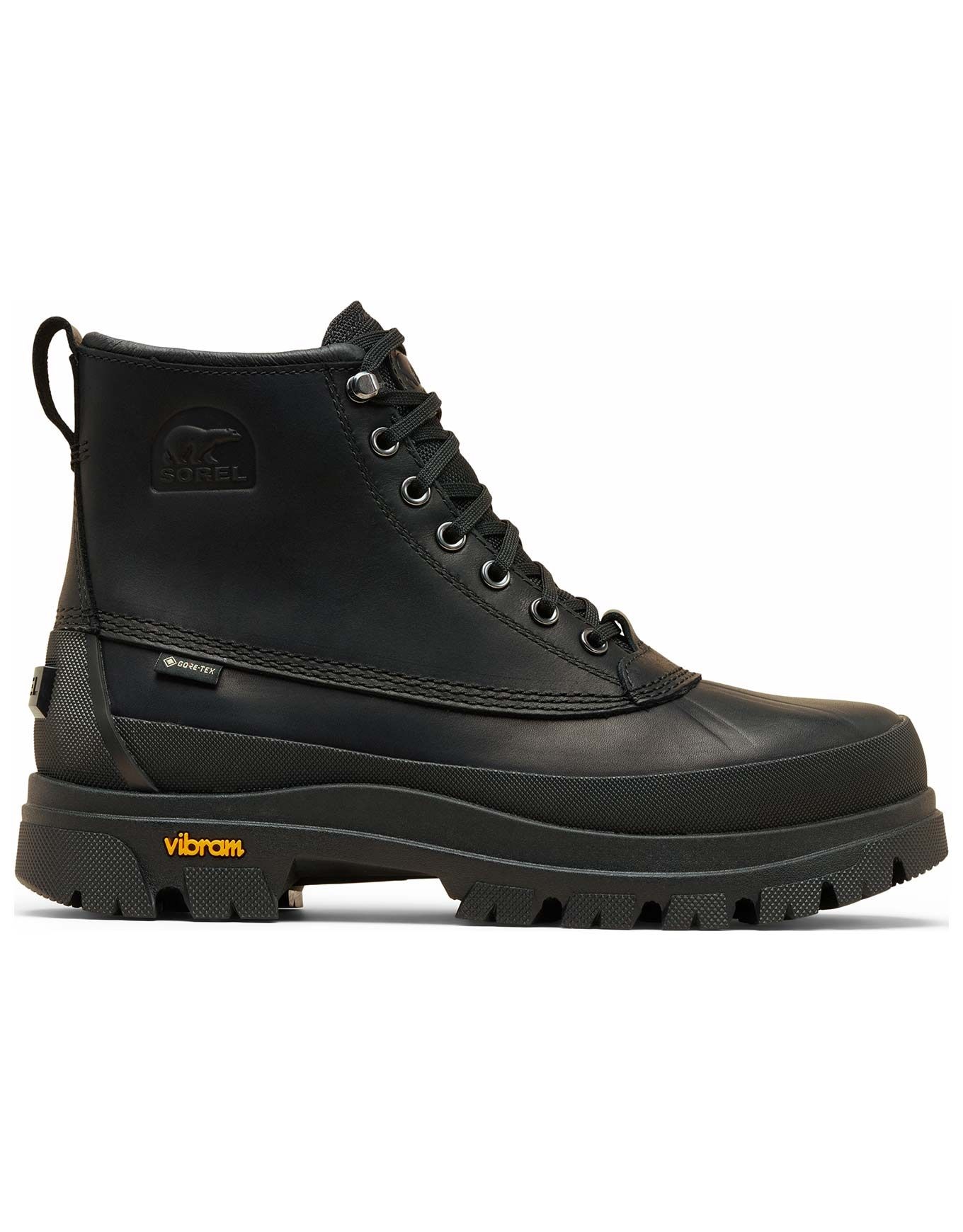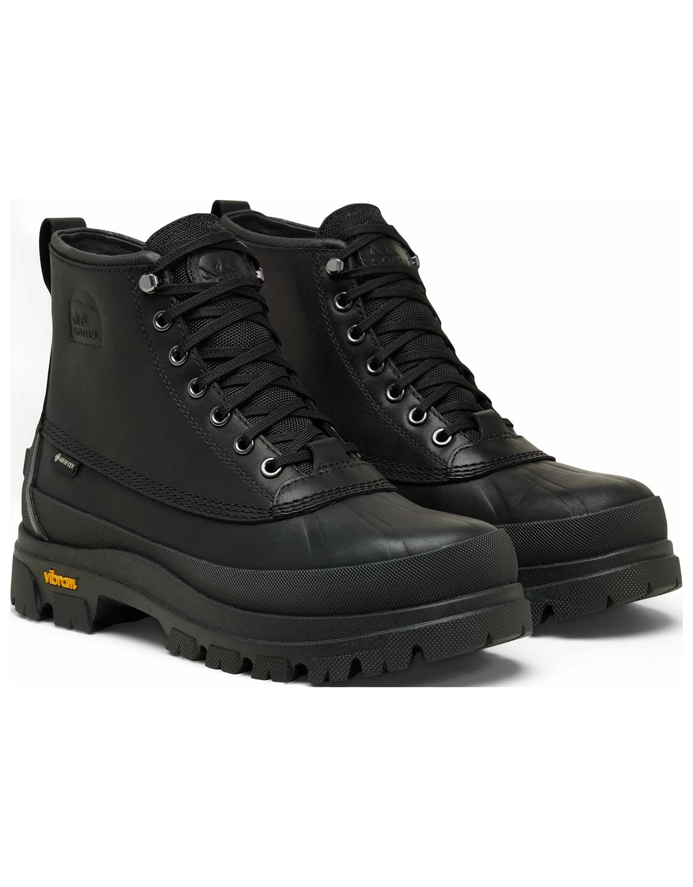 Sorel Daystorm Horizon GTX Black Black, chaussure ville homme imperméable Gore-Tex, cuir pleine fleur, languette nylon balistique, semelle Ortholite amovible et Vibram XS TREK EVO pour adhérence fiable.